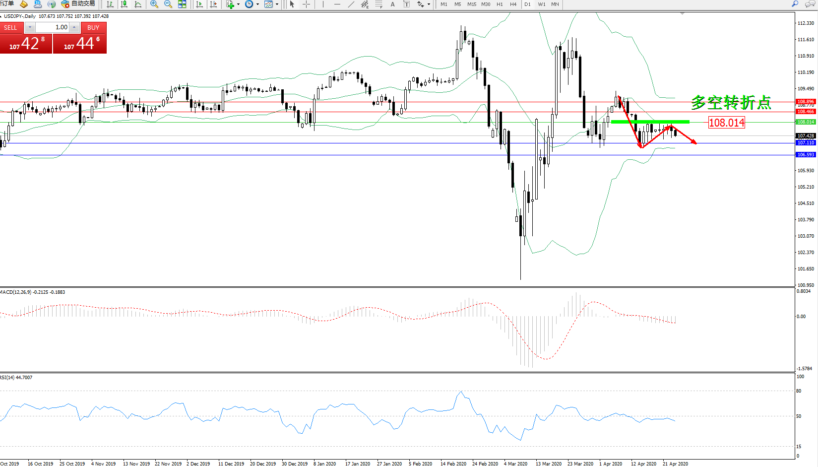 多空转折点:108.014