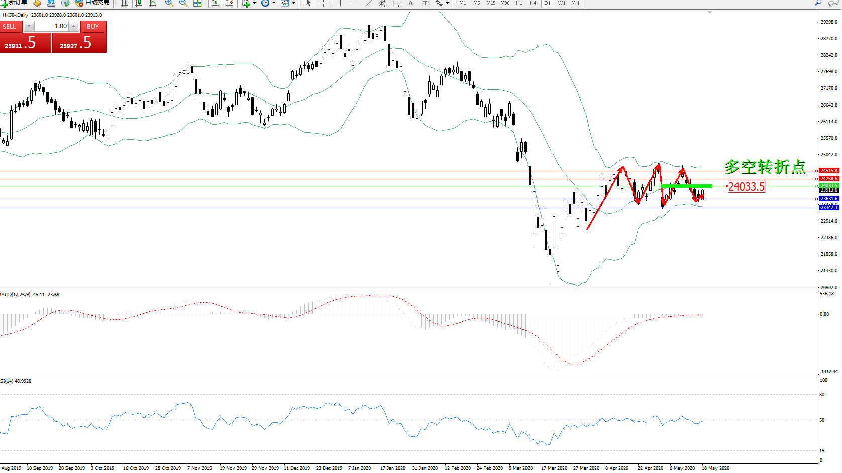 香港恒生指数518日(周一)收盘上涨137.30点,涨幅0.58%,报23934.77点;港股市场三大指数均上涨,生物医药B类股全线大涨, 迈博药业-B暴涨50%,君实生物等多股续创新高;国际油价持续反弹,石油股集体强势,中海油飙涨近8%领涨蓝筹;美国加大对华为限制,手机概念股大跌居前,舜宇、比亚迪电子皆跌超10%;半导体股中芯国际高开低走,收跌6.37%。 恒生指数公司公告称,纳入同股不同权公司及第二上市公司至恒生指数及恒生中国企业指数选股范畴,此类公司在指数里的个别成份股比重上限设定为5%;同时撤除对红筹股及民营企业加入恒生中国企业指数的额外挑选准则。决定对现时恒生指数的定位不作任何改变。
