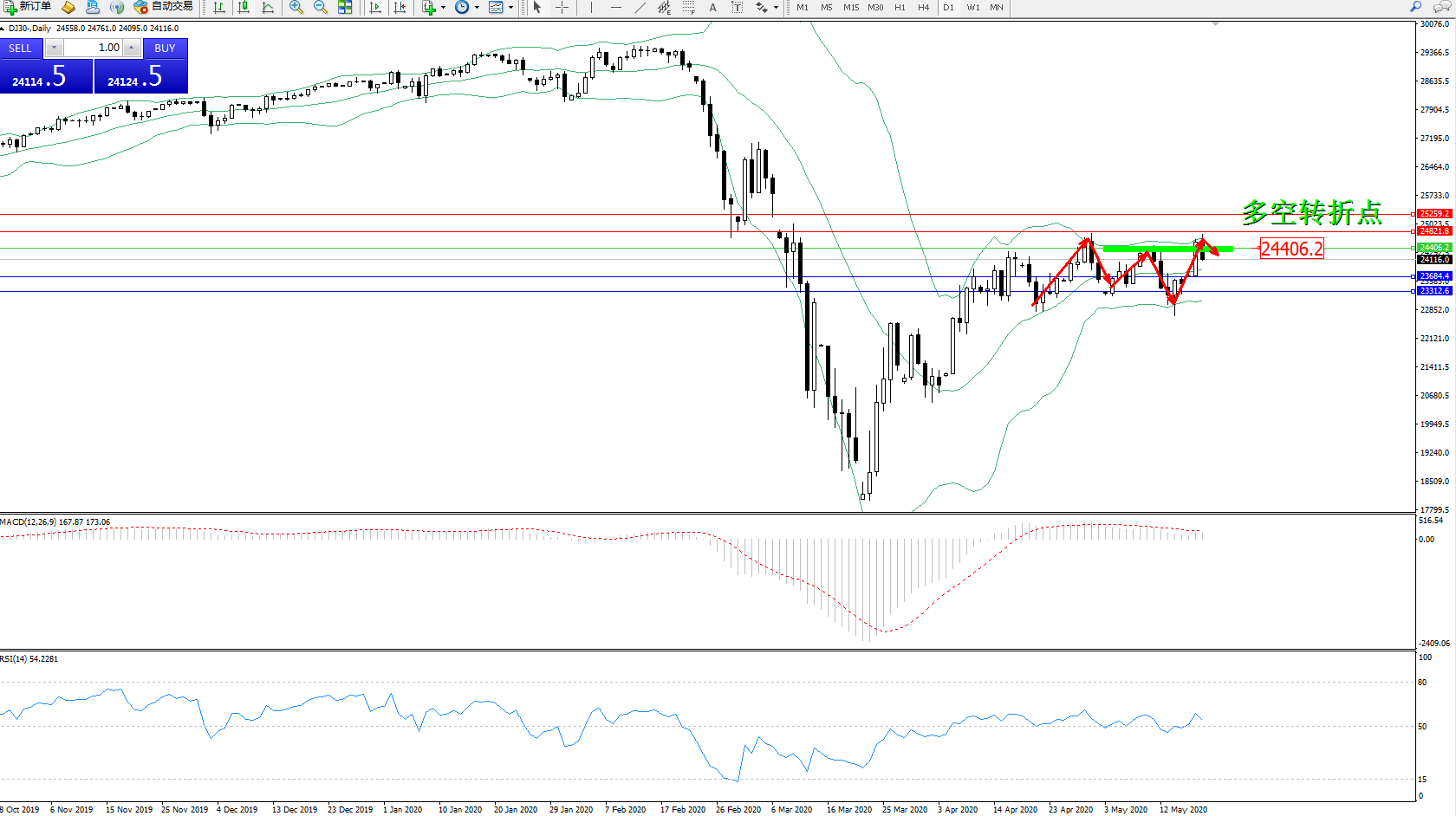 道琼斯指数519日(周二)收盘下跌390.50点,跌幅1.59%,报24206.86点。美股三大指数全线收跌,美国抗疫概念、能源板块走低。据报道Moderna的候选新冠疫苗没有产生足够多评估其成功与否的关键数据,关于该公司疫苗的消息是股市周一大涨的原因之一。将继续看到市场波动,因为市场每天都在把获取到的任何一丁点信息都反映到定价中,每天都在获取每一点信息并立即据此定价。现在其它一切都是新冠的衍生品。疫苗会成为改变格局的利好因素,股市也做出了相应的反应。