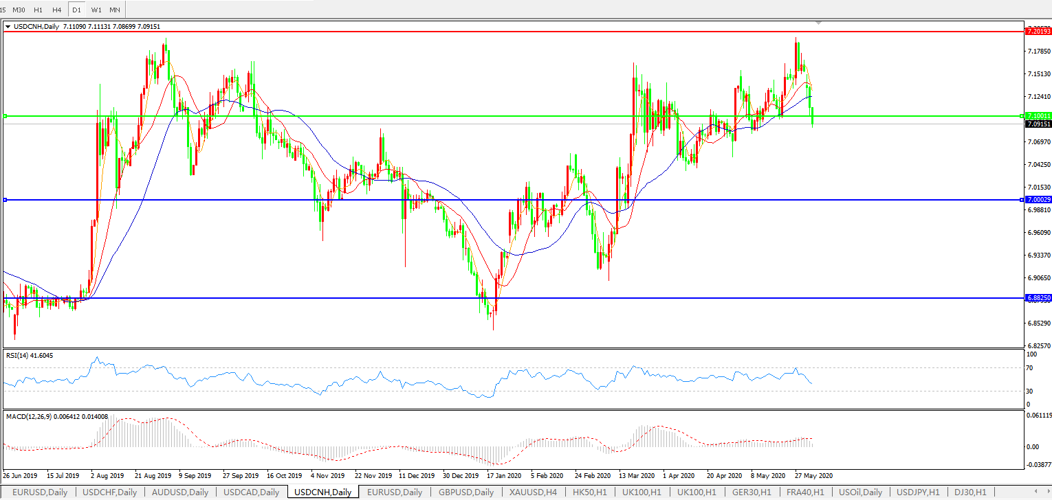 交易策略: 在7.1000之上,看涨,目标价位为7.2000,然后为7.3000。