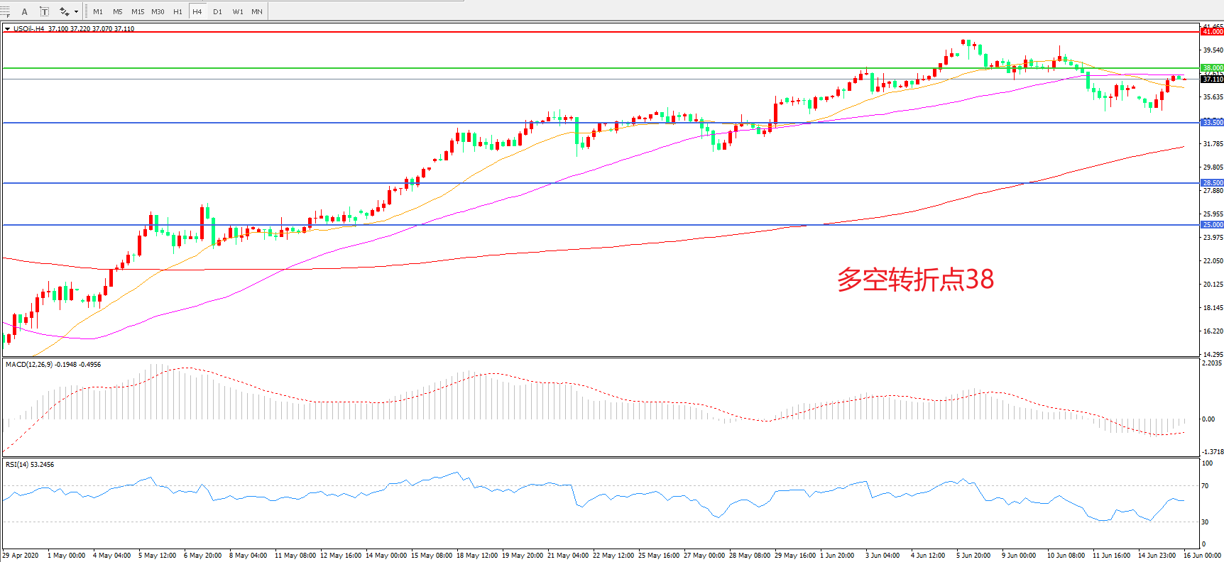 多空转折点:38.00