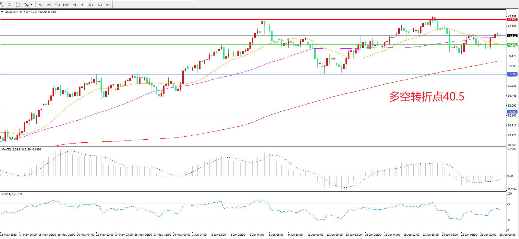 周一(6月29日),美股大涨提振了市场上的风险情绪,布伦特原油逆转亚洲交易时段跌势,强势上行,收报41.56美元/桶。美国油服公司贝克休斯此前公布的数据显示,截至6月26日当周,石油钻井总数减少1座至188座,总钻井总数减少至265座。页岩油生产商产能难以恢复缓解了市场对于需求增加的忧虑。