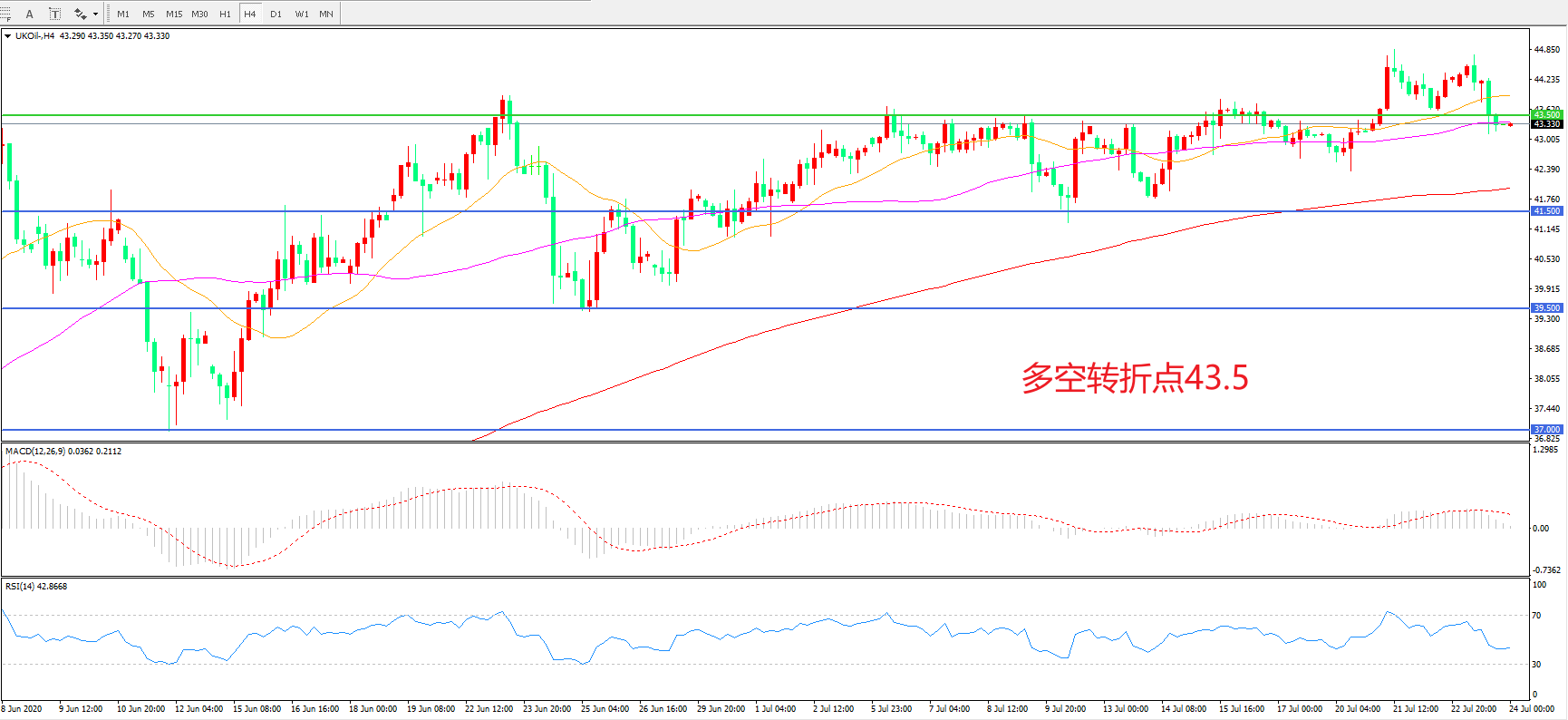 多空转折点:43.50