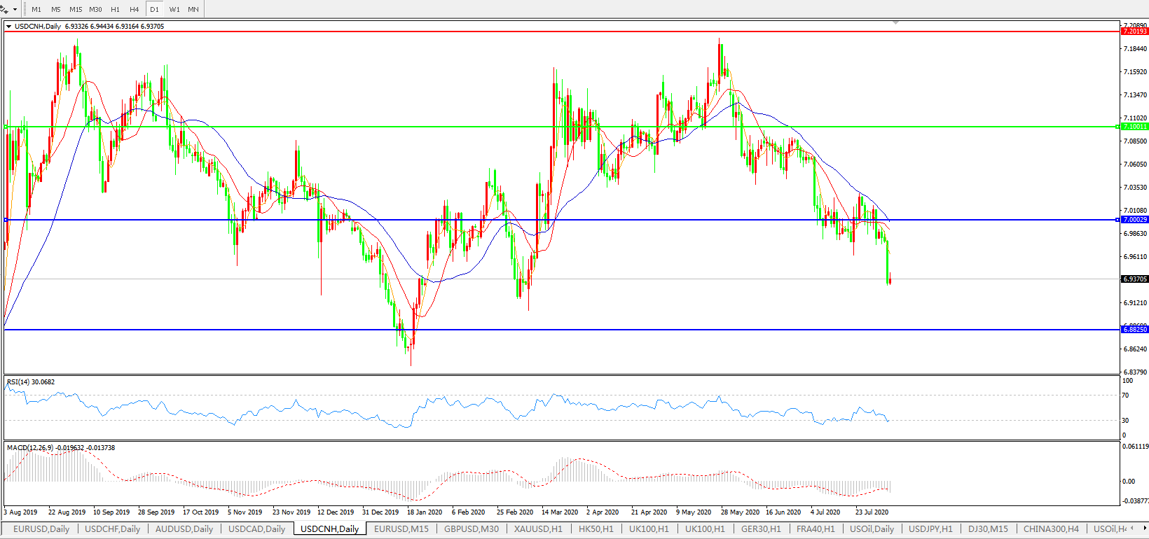 技术面简析:日图均线整体呈空头排列,汇价跌破7.0关口后开始加速下行,MACD运行于0轴下方且量能再度放量,RSI继续小幅走弱,预计短期汇价大概率将进一步下行。