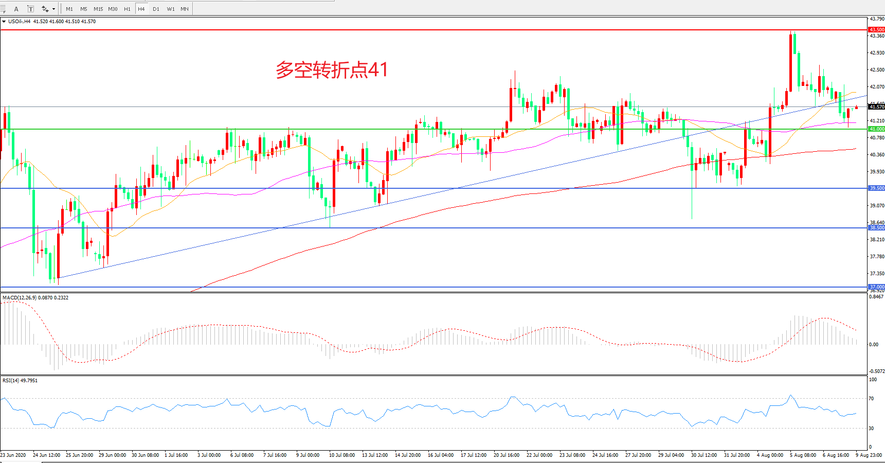 交易策略:在41.00之上看涨,目标43.50 46.00