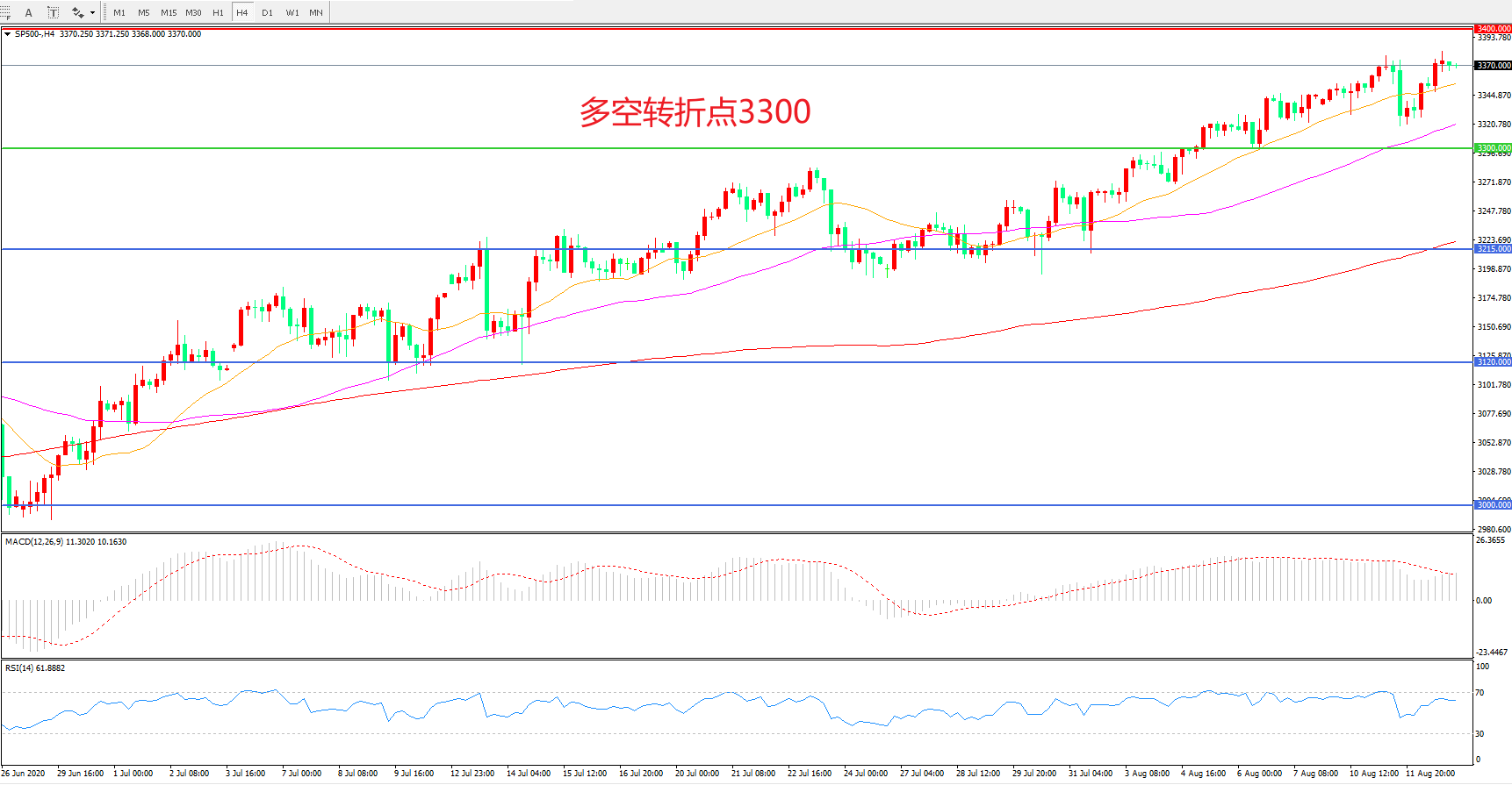 周三(8月12日),受新冠疫苗利好与科技股反弹提振,美国三大股指全线收涨,标普500震荡上行后收报3369.75点,距历史新高仅一步之遥。大型科技股大幅反弹,苹果涨超3%,微软、亚马逊涨逾2%,但而与此同时,美国经济正遭受重创,失业率超过10%,第二季度GDP按年率下降32.9%,创历史新高。