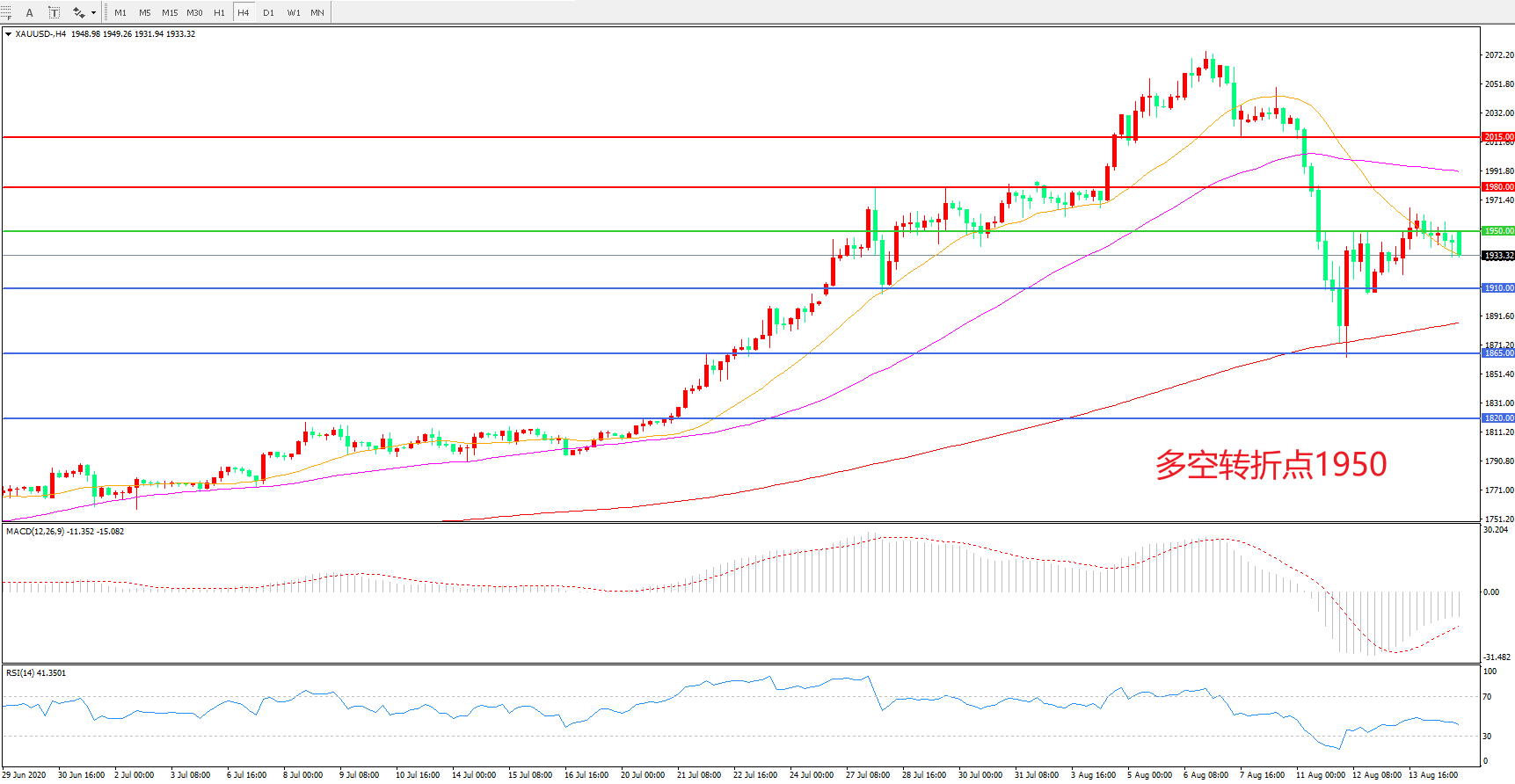 备选策略: 在1950.00之下看跌,目标1910.00 1865.00