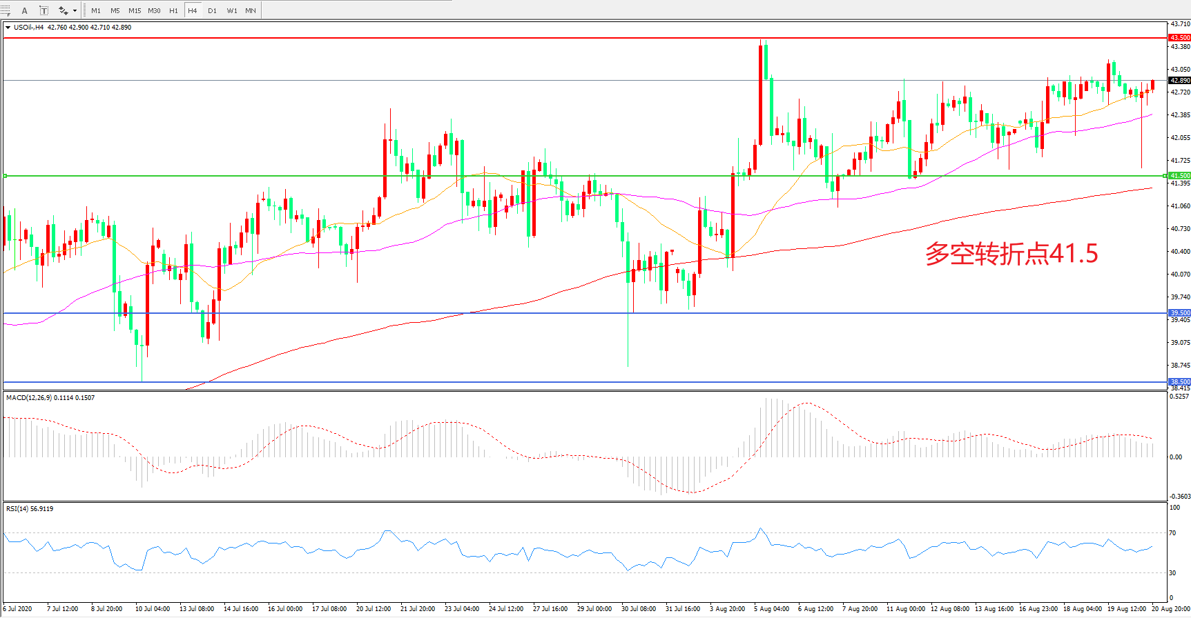 周四(8月20日),OPEC+需要补偿逾200万桶/日的超额原油供应,且美国初请失业救济人数意外上升给油价带来了压力,美油一度大跌逾3%,好在美股低开之后逐渐高走,原油价格也逐渐从低点开始恢复,美国WTI原油反弹后收报42.87美元/桶,上演了一场精彩的深V反转行情。