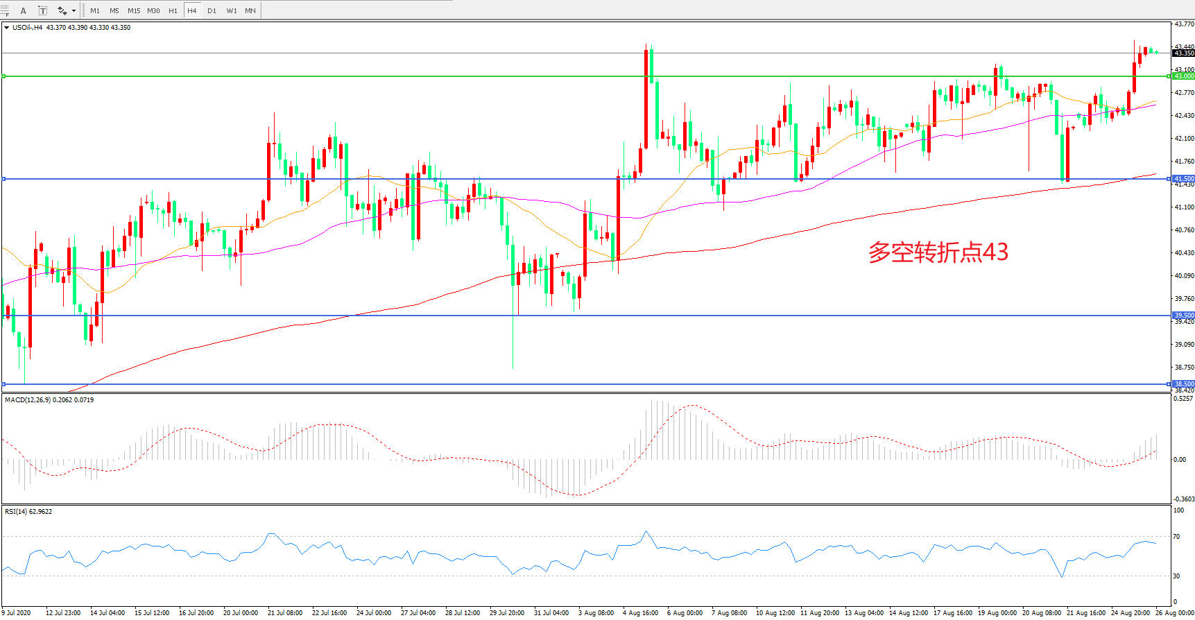 多空转折点:43.50