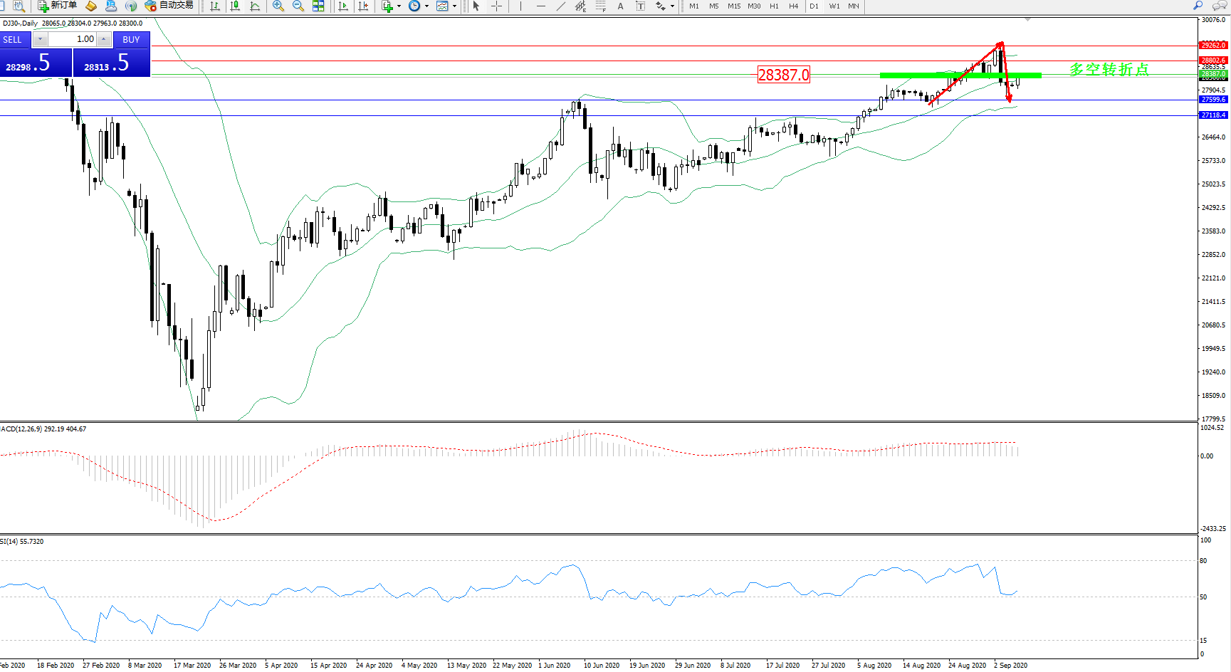 道琼斯指数9月4日(周五)收盘下跌159.40点,跌幅0.56%,报28133.31点。纽约证券交易所因劳动节,休市一天。上周五出炉的美国就业数据对美元构成支撑。美国劳工部公布数据显示,美国就业增长在8月进一步放缓,永久性失业人数增加,政府的各类救助计划逐步到期,引发了人们质疑经济从新冠疫情引发的深度衰退中复苏的可持续性。但8月失业率从7月的10.2%降至8.4%。美国股市上周大跌也促使一些交易员调整美元仓位。美元重心缓慢上移,更多是避险需求的上升,而非美国基本面的向好,全球股市集体承压也带给美元一定支撑,但低利率政策将持续下去,除非看到市场风险偏好迅速回落,尤其是新兴市场,否则美元升势依旧有限。