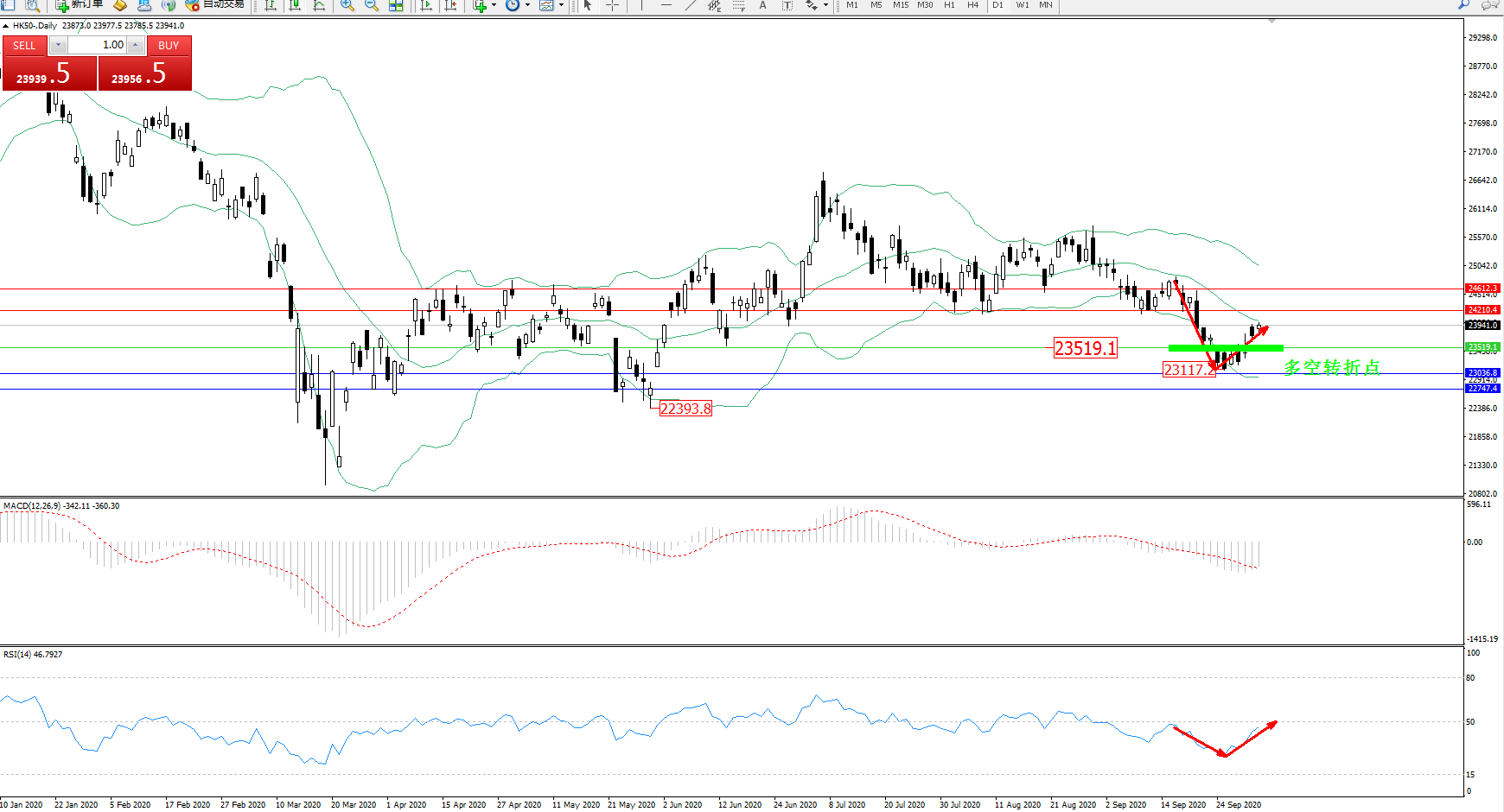 香港恒生指数10月6日(周二)收盘上涨212.87点,涨幅0.90%,报23980.65点;港股主要指数均收涨,市场情绪较佳。恒指全天呈高位震荡态势,中国软件国际大涨逾11%;黄金股午后涨幅扩大,紫金矿业升超6%;半导体板块回暖,中芯国际涨超7%;手机概念股、汽车股、特斯拉概念股、生物医药股全日强势;科技股持续造好,美团涨5%,小米涨近3%,惟阿里跌0.7%。昨日强势的体育用品股跌幅居前,保险股、电信股小幅下挫。大市成交额继续萎靡,全天仅成交868亿港元。港大香港经济及商业策略研究所亚太经济合作研究报告表示,预计香港第四季实质本地生产总值按年下跌4.5%,今年全年经济收缩7.2%,较上次公布的全年预测下调1.7个百分点。嘉和生物(6998.HK)暗盘交投活跃,收报33.3港元,公司是一家生物制药巨头,致力于开发和商业化肿瘤学和自身免疫性药物。已成功研发出靶向通路极具潜力的候选药物,涵盖全球前三大肿瘤靶点及前十款畅销药物中的五款。公司称预计未来12~18个月内将持续向中国药监局和FDA提交NDA及多项临床研究新药申请。