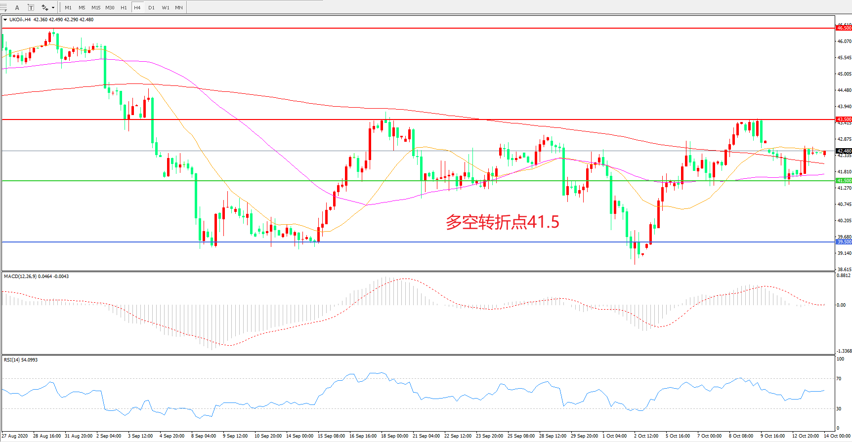 交易策略: 在41.50之上看涨,目标43.50 46.50