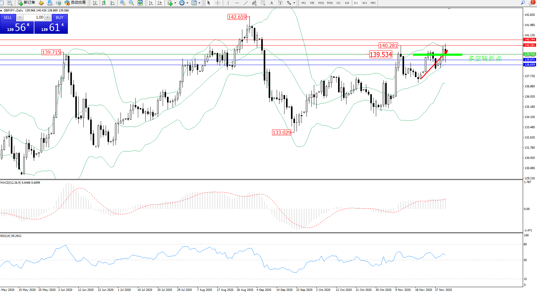 交易策略:139.534上方看涨,目标140.281、140.744