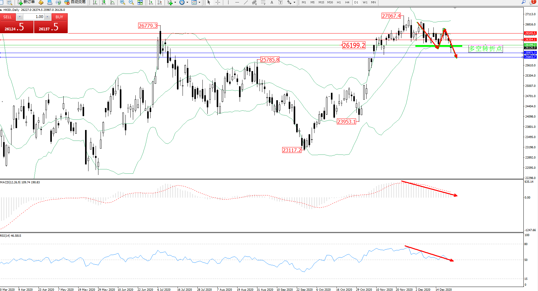 技术点评:高位空头动力延续布林带指标通道内中下轨区间弱势窄幅震荡向下移动持续中,期间多次试探下轨附近节点后终究引来破位下行走势,布林带指标呈收口走势持续平移后开始有张口走势迹象,高位空头动力逐渐增强,MACD指标处于多头区域高位弱势整理缓慢下行中,RSI指标处于多头区域高位维持整理下行至50均衡线后开始破位下行中;