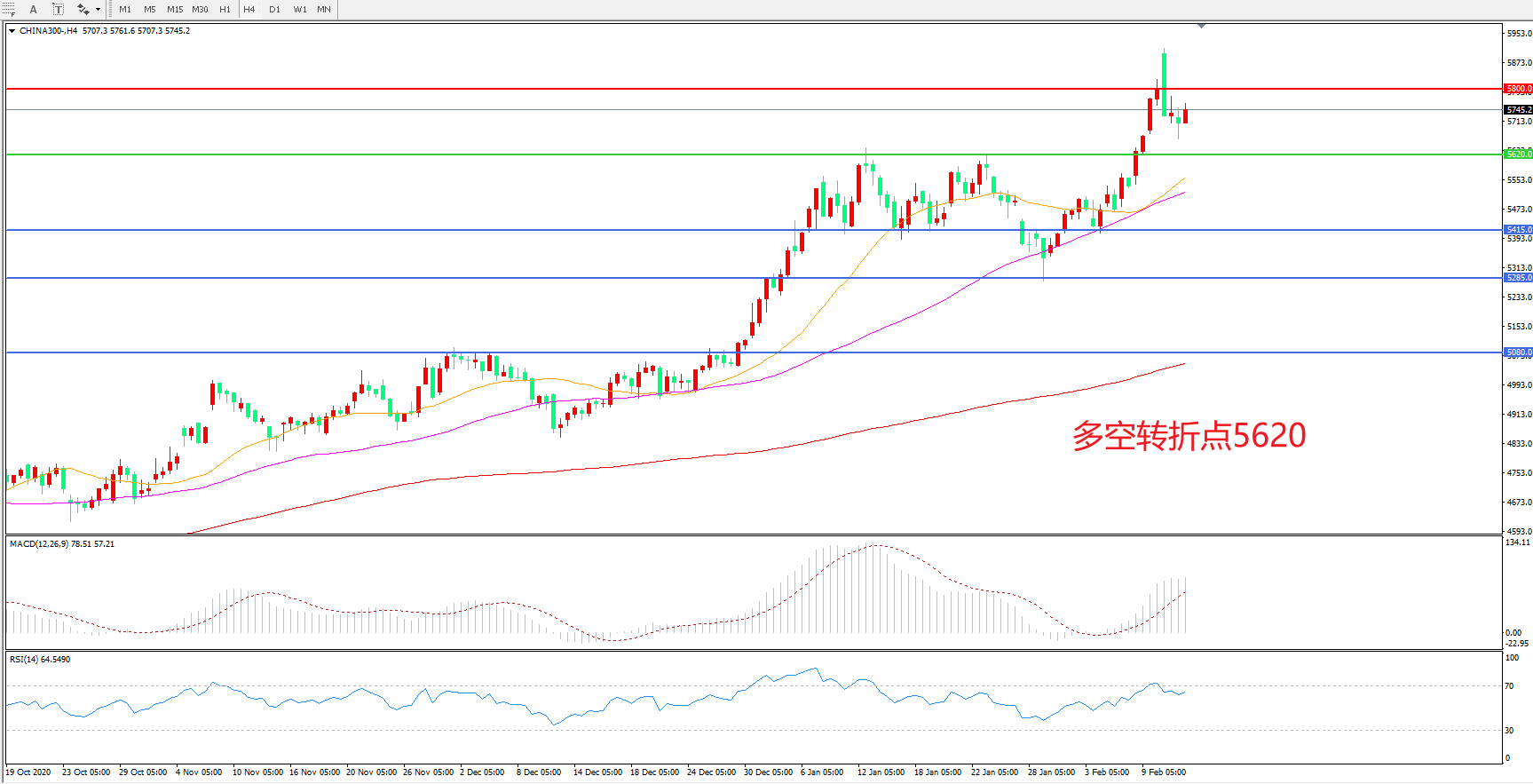 交易策略:在5620.00之上看涨,目标5800.00    5950.00