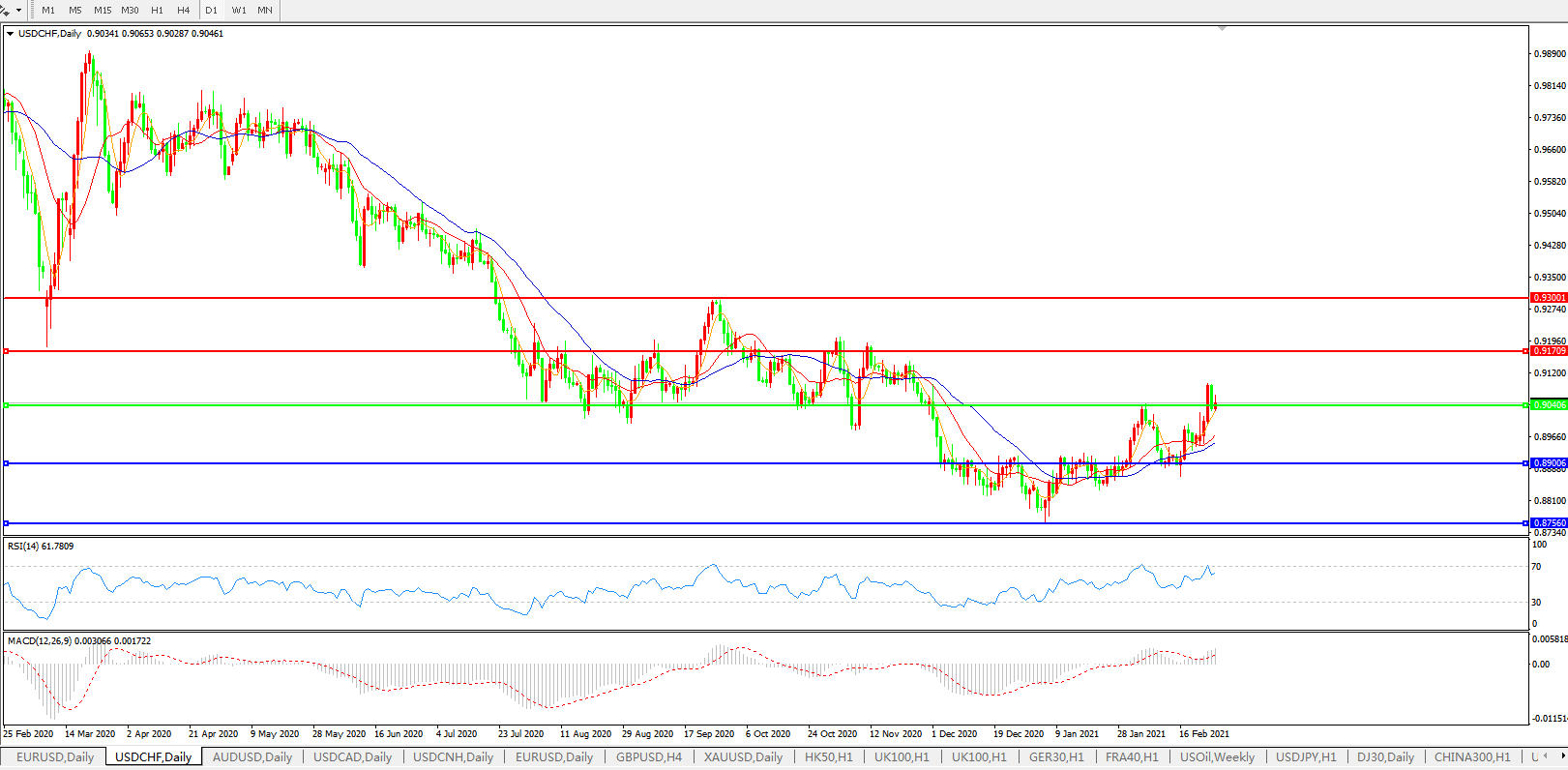 美元兑瑞郎USDCHF 日线图: