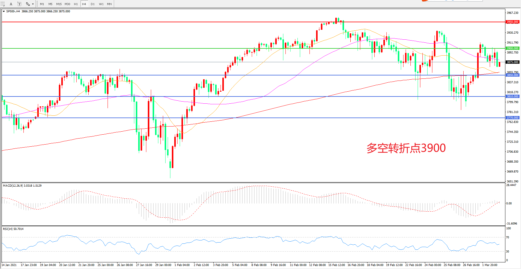 多空转折点:3900.00
