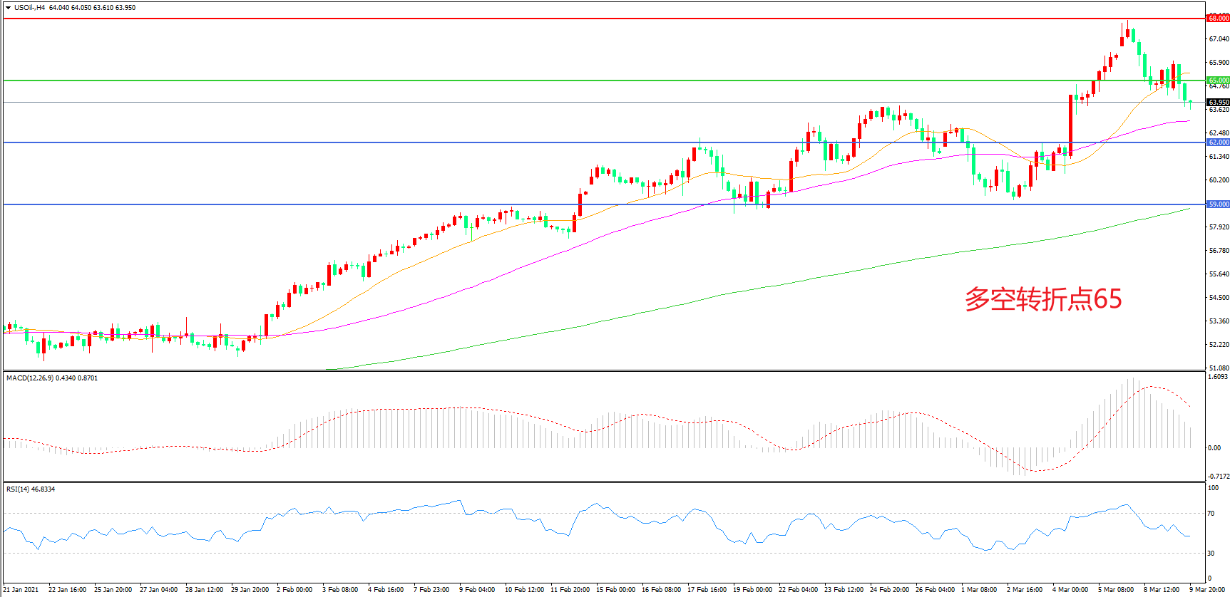 近期,市场呈现了明显的回调行情,显然原油市场多头也开始有主动获利离场现象出现,在美国通过1.9万亿刺激之后,市场对于全球通胀的预期更加明确,也对于美联储未来可能收紧流动性的预期更加明确,这是美元涨原油价格跌的重要原因。从供需的角度来看,原油价格供应趋紧是确定的,但如果宏观市场的风向改变,那么油价的走势可能就会更多的考虑大环境的变化。