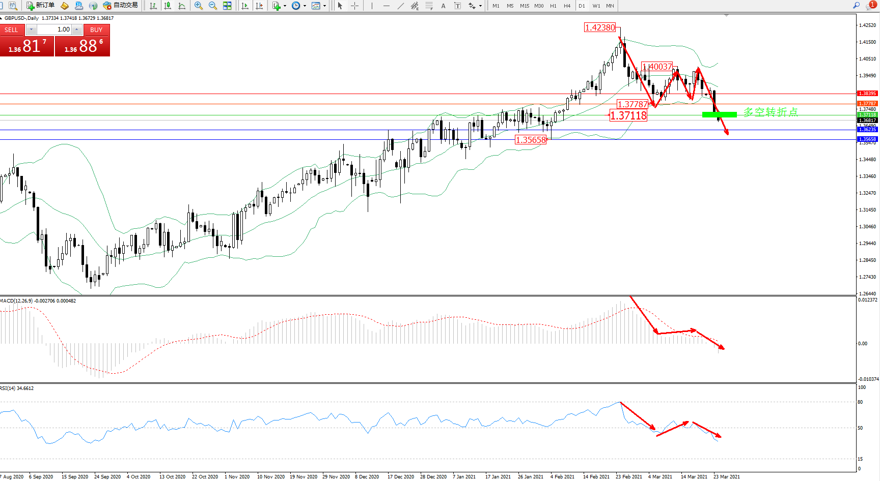备选策略:1.37118上方看涨,目标1.37787、1.38395