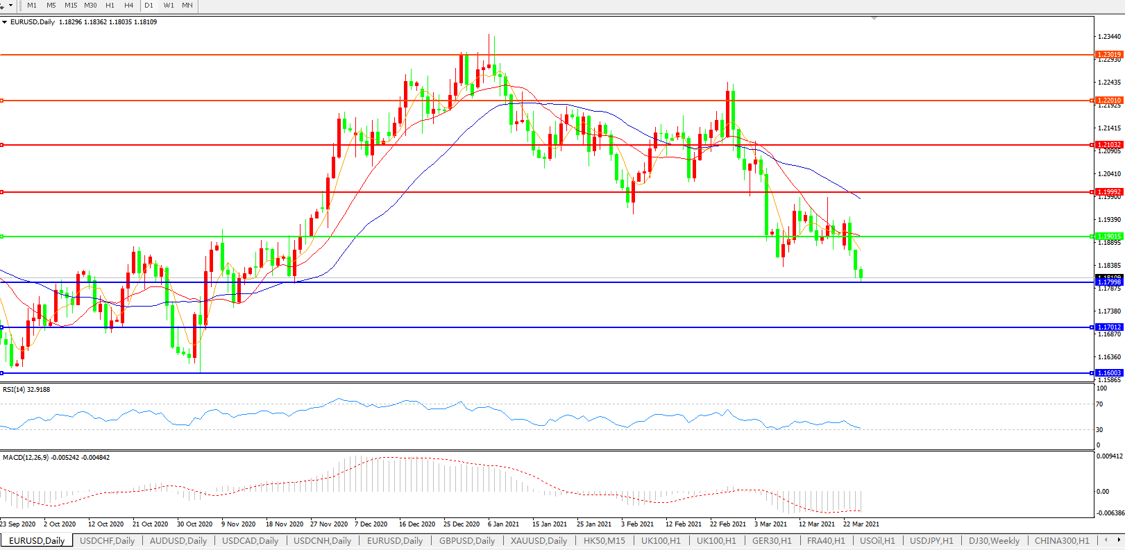 技术面简析:日图短均线呈发散下行态势,汇价持续弱势下行,MACD运行于0轴下方但量能0轴下微放量,RSI震荡走弱,预计短期汇价大概率将进一步走低。