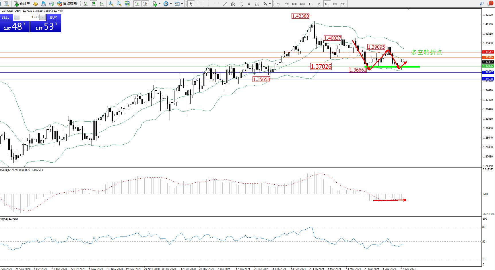 交易策略:1.37026上方看涨,目标1.37939、1.38517