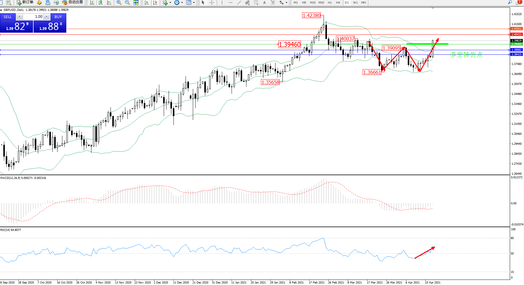 交易策略:1.39460上方看涨,目标1.40433、1.41011