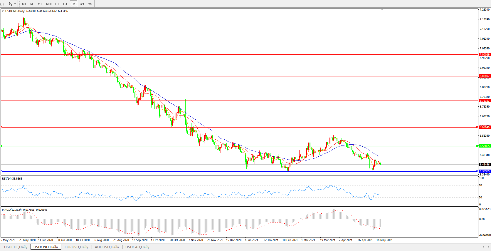 美元兑人民币USDCNH    日线图: