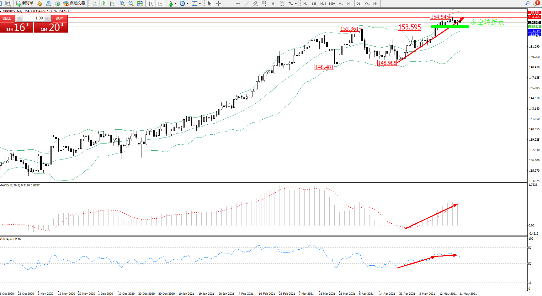 多空转折点:153.595