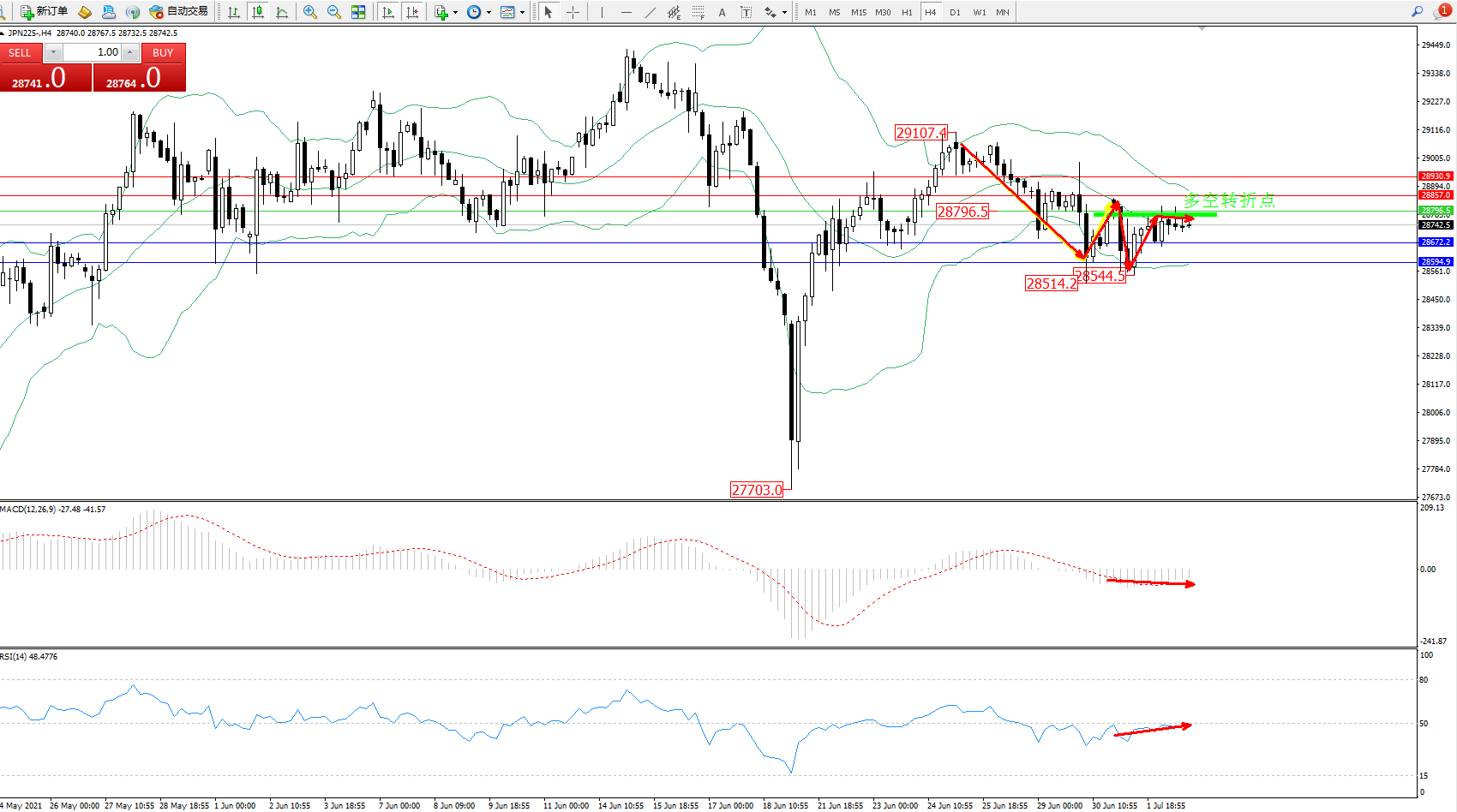 日经225指数7月2日(周五)收盘上涨59.96点,涨幅0.21%,报28767.00点。日本奥运大臣丸川珠代当地时间7月2日表示,考虑到今后的新冠疫情感染状况,将通过与东京奥组委和国际奥委会(IOC)等进行的五方会谈,妥善应对东京奥运会观众等问题。在东京疫情不断恶化的情况下,日本政府和执政党内部有意见指出要考虑以无观众形式举办奥运会。丸川珠代2日表示,将通过与东京奥组委等进行五方会谈,以明确在东京发布紧急事态宣言或适用“防止蔓延等重点措施”的情况下,应该如何应对观众入场观赛的问题。