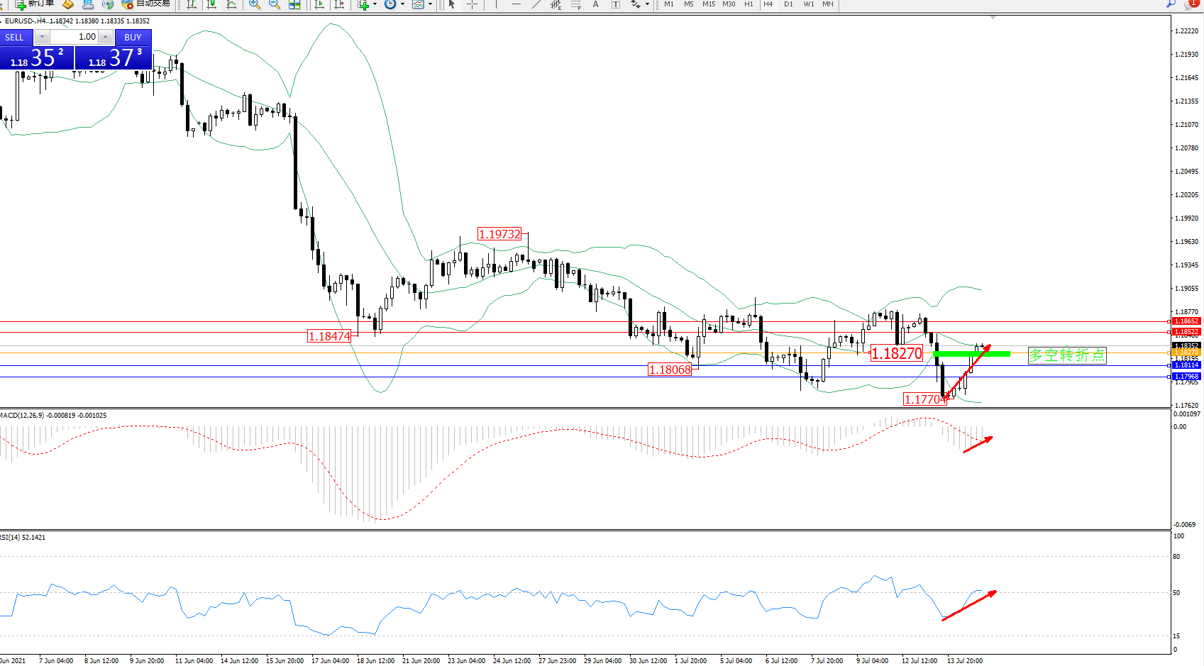 交易策略:1.18270上方看涨,目标1.18522、1.18652