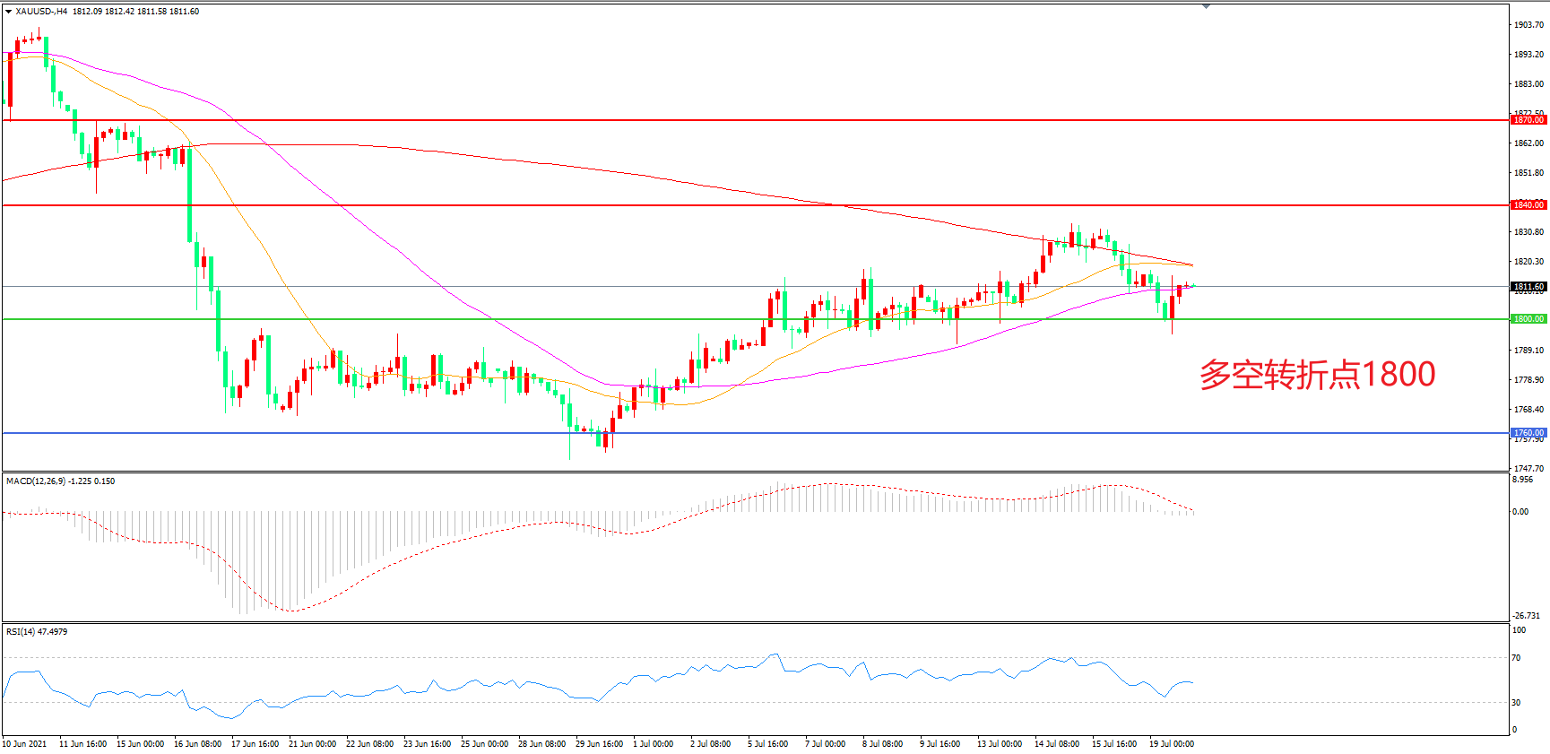 交易策略: 在1800.00之上看涨,目标1840.00 1870.00