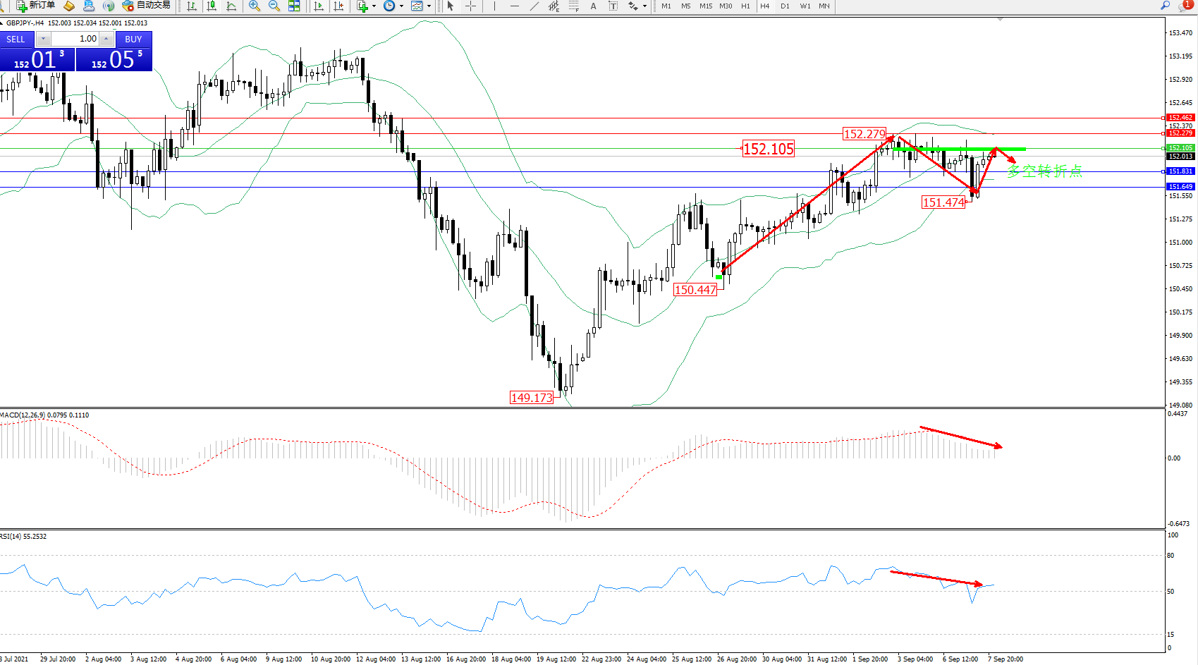技术点评:多头动力延续布林带指标通道中上轨区间持续震荡上扬,高位抵达152.279位置后遇阻短暂整理回撤,触及布林带指标下轨附近节点后快速回升,纠结于中轨附近弱势徘徊,布林带指标呈收口走势持续中,波幅空间逐渐收窄,MACD指标处于多头区域维持整理平缓下移,RSI指标纠结于50均衡线附近弱势整理中;