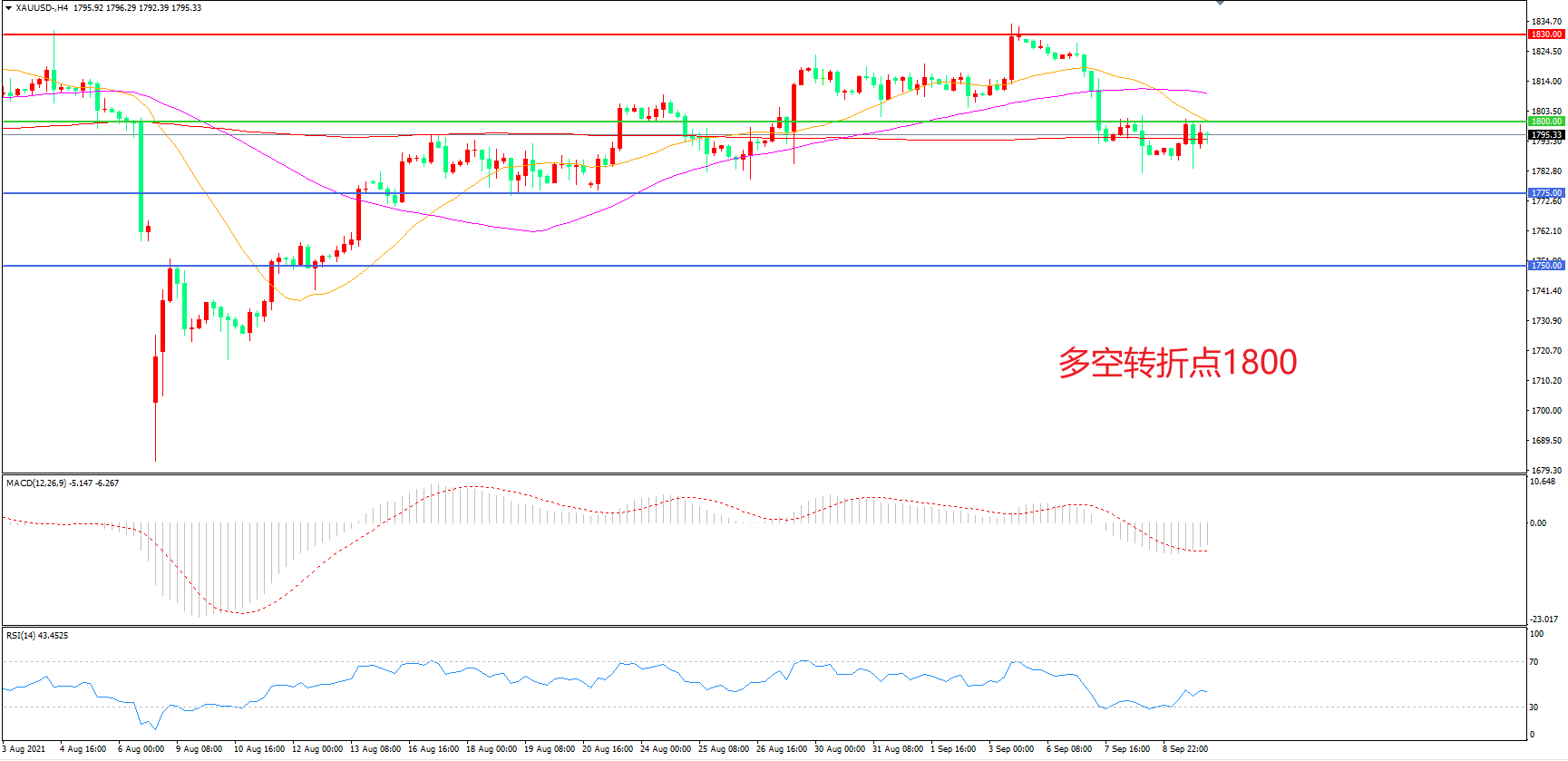 交易策略: 在1800.00之下看跌,目标1775.00 1750.00