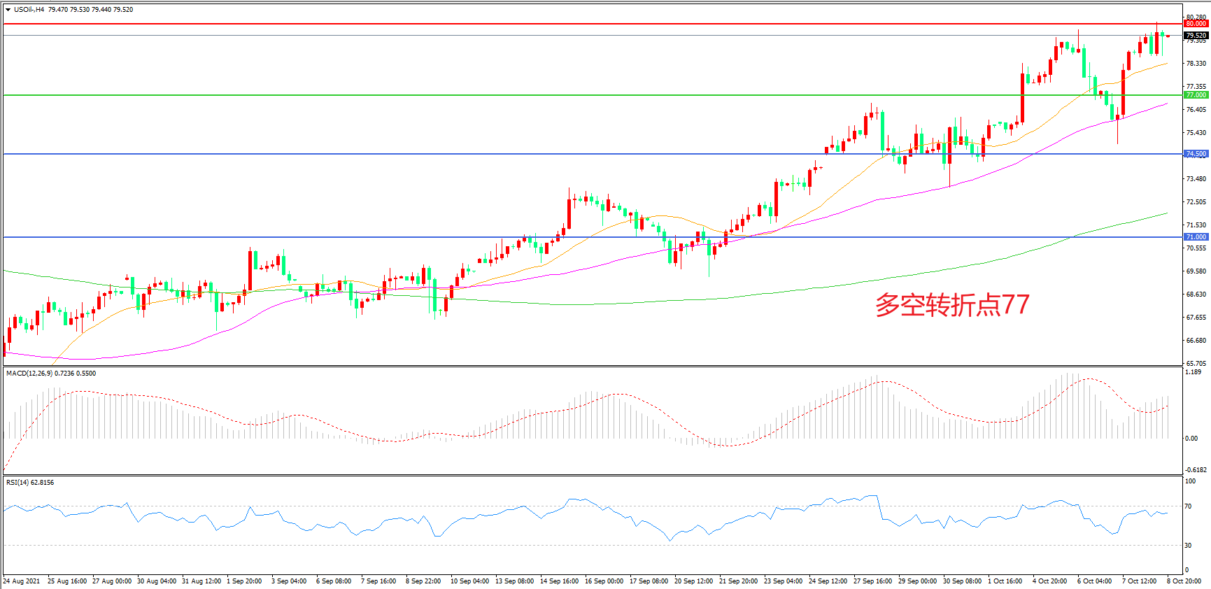 多空转折点:77.00
