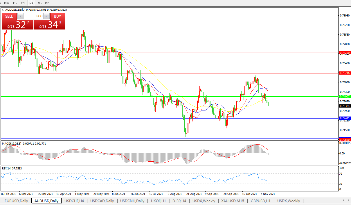尽管澳大利亚人口众多的东海岸在长期封锁后重新开放,但由于雇主不愿招聘,澳大利亚10月份就业人数意外下降,失业率上升。澳大利亚统计局周四公布的数据显示,上个月就业人数减少46300 人,经济学家估计为增加50000 人。失业率上升至5.2%,高于经济学家预测的4.8%。报告公布后澳元走软,创近一个月新低至0.7316,跌幅约0.15%。