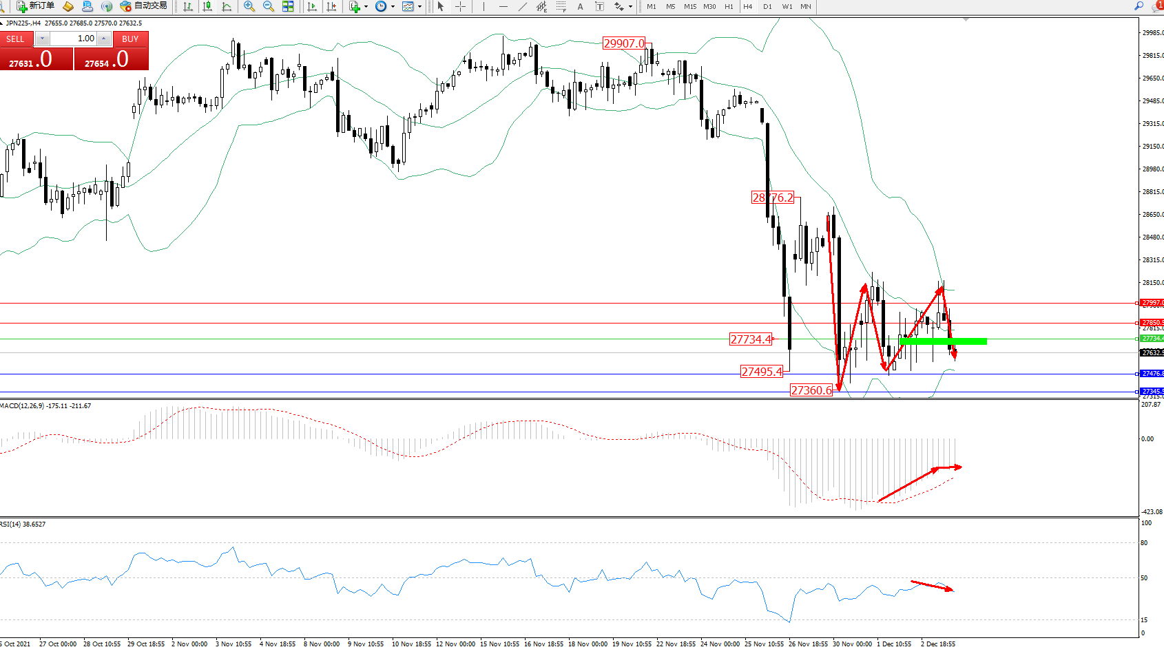 日经225指数12月3日(周五)收盘上涨250.63点,涨幅0.90%,报28004.00点。周五公布的一项路透调查显示,7-9月当季日本经济萎缩幅度可能高于预期,因为受供应限制影响的企业资本支出停滞不前。调查显示,日本第三季经济环比年率料为萎缩3.1%,降幅略高于政府上个月初步估计的3.0%。虽然国内消费面临的压力正在缓解,但下周的数据将表明,即使决策层保持宽松的货币政策和扩张性财政政策,以帮助经济从疫情中恢复,日本经济可能仍需要时间来反弹。