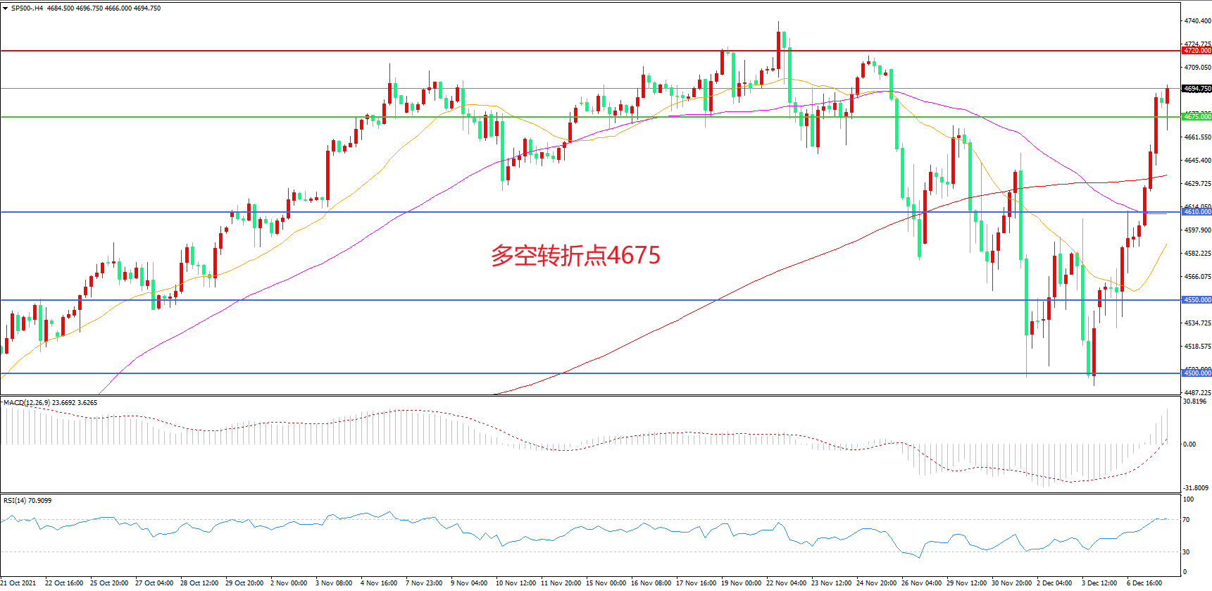交易策略:在4675.00之上看涨,目标4720.00    4800.00