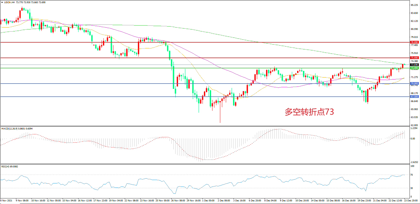 交易策略:在73.00之上看涨,目标75.00        77.50