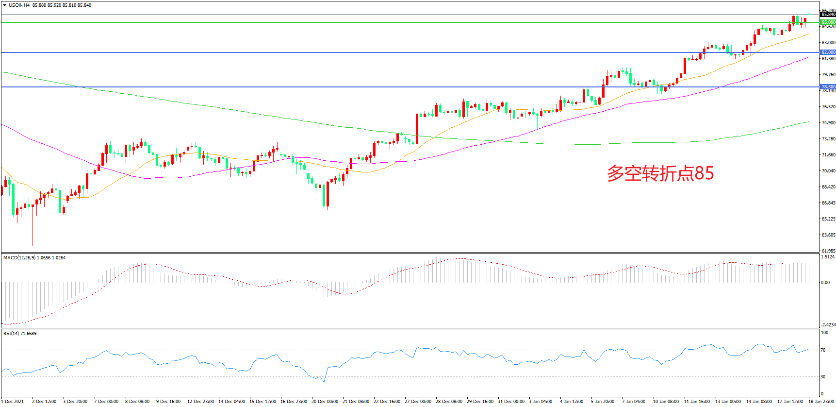 交易策略:在85.00之上看涨,目标88.00 90.00
