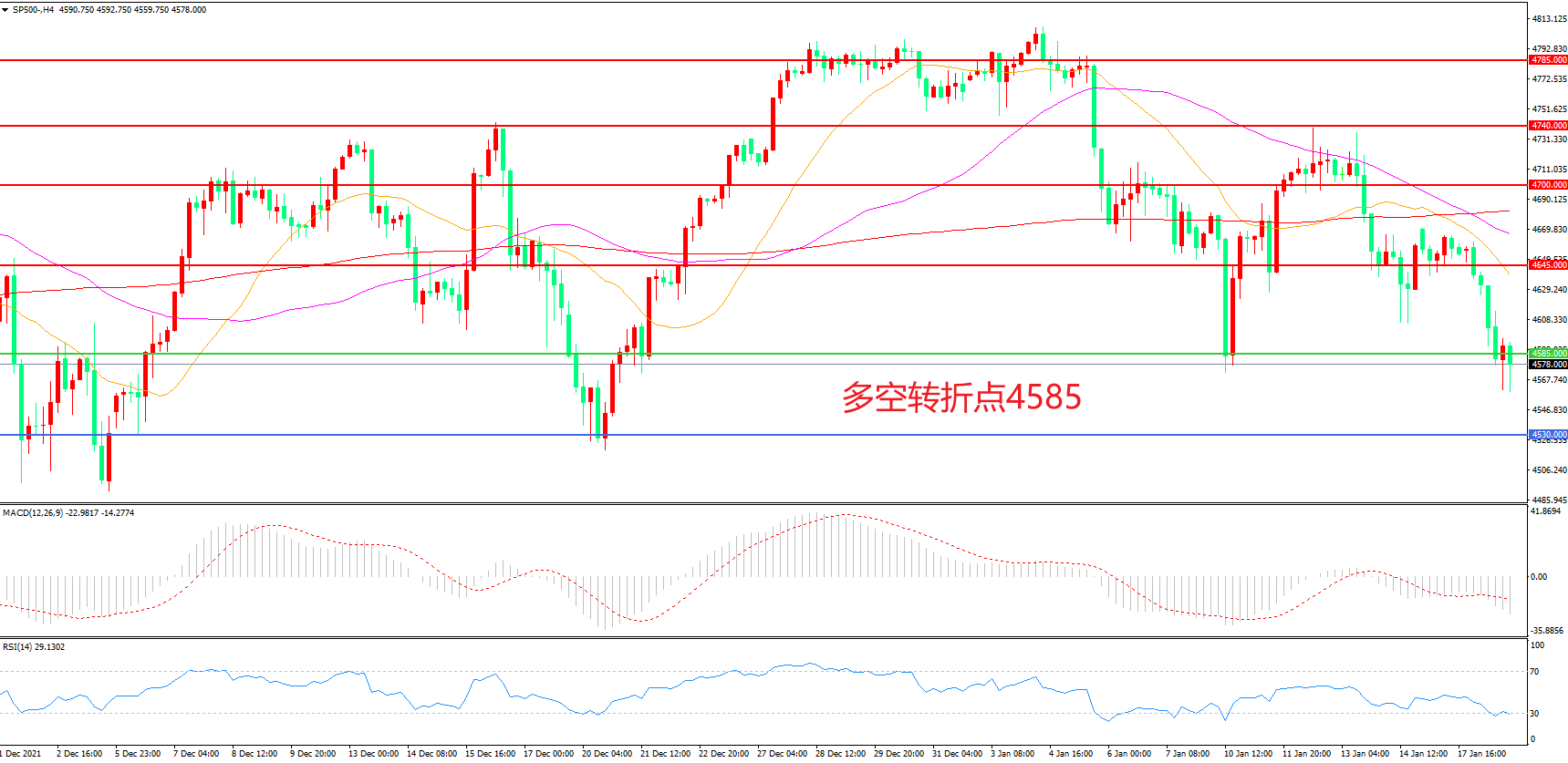 交易策略:在4585.00之下看跌,目标4530.00 4470.00