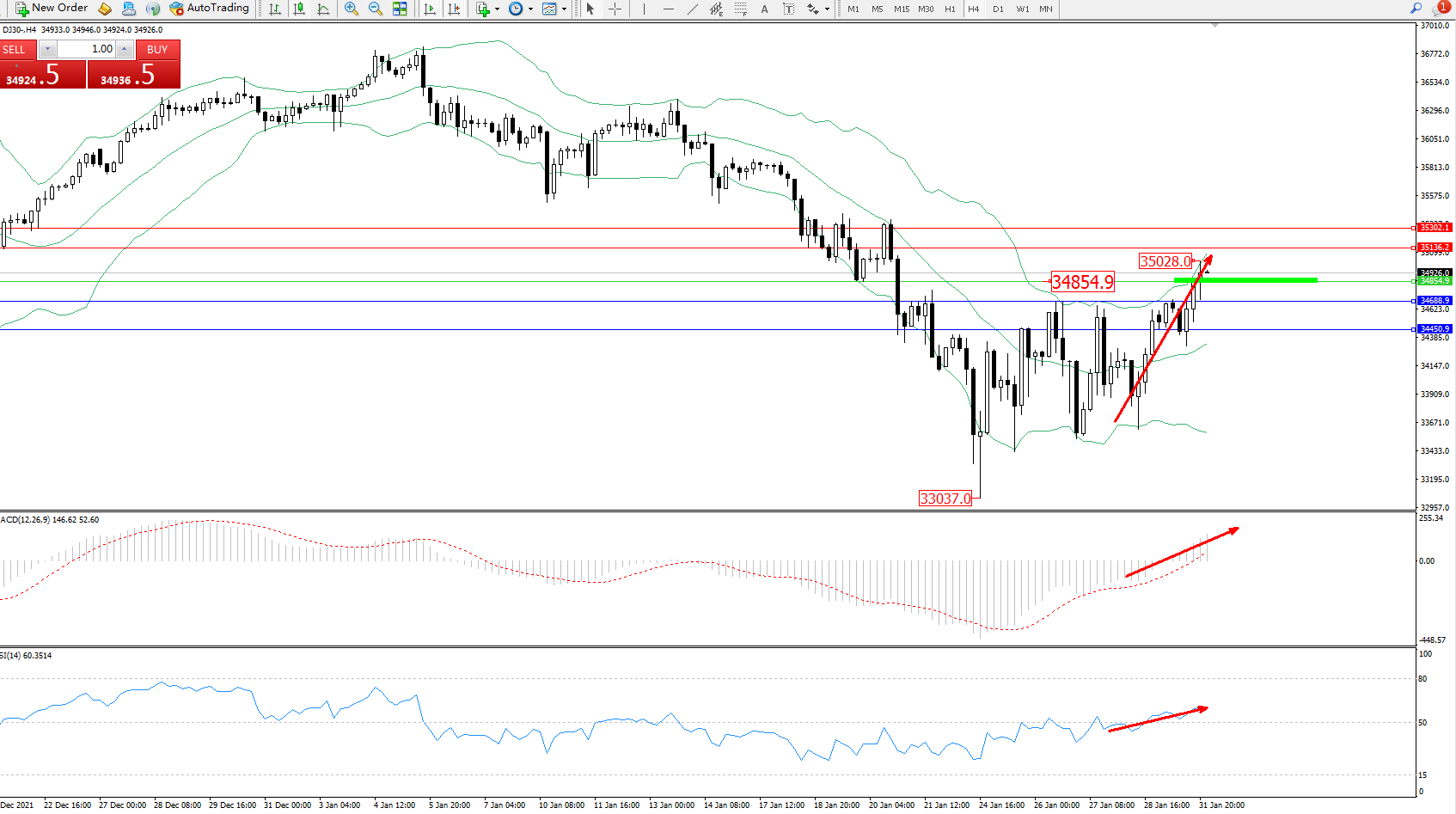 技术点评:低位多头动力维持宽幅震荡中,多头动力延续布林带指标中上轨区间持续攀升向上移动,短期多头抵达35028位置后整理,多头动力有进一步拉升迹象,布林带指标呈张口走势中,MACD指标维持多头动力缓慢上移中,RSI指标处于50均衡线上方不断缓慢上移中;
