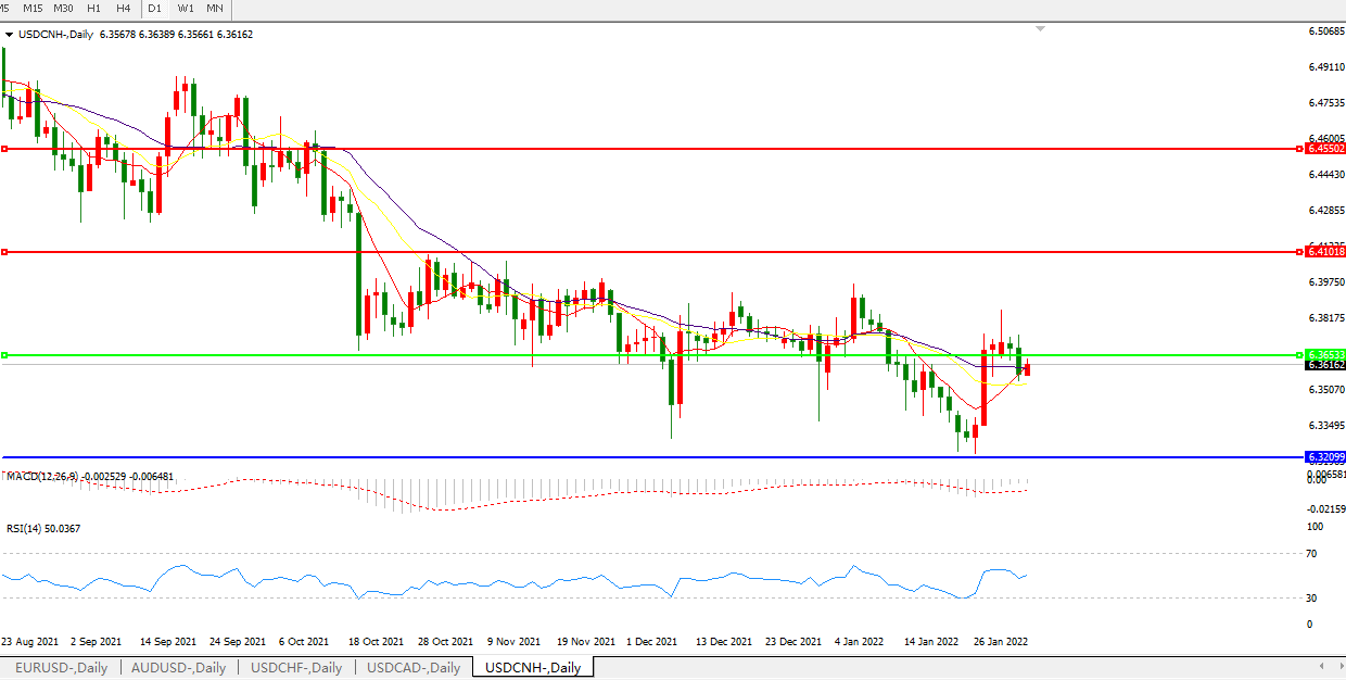 备选策略:在6.3650之下,看跌,目标价位为6.3200,然后为6.2800。