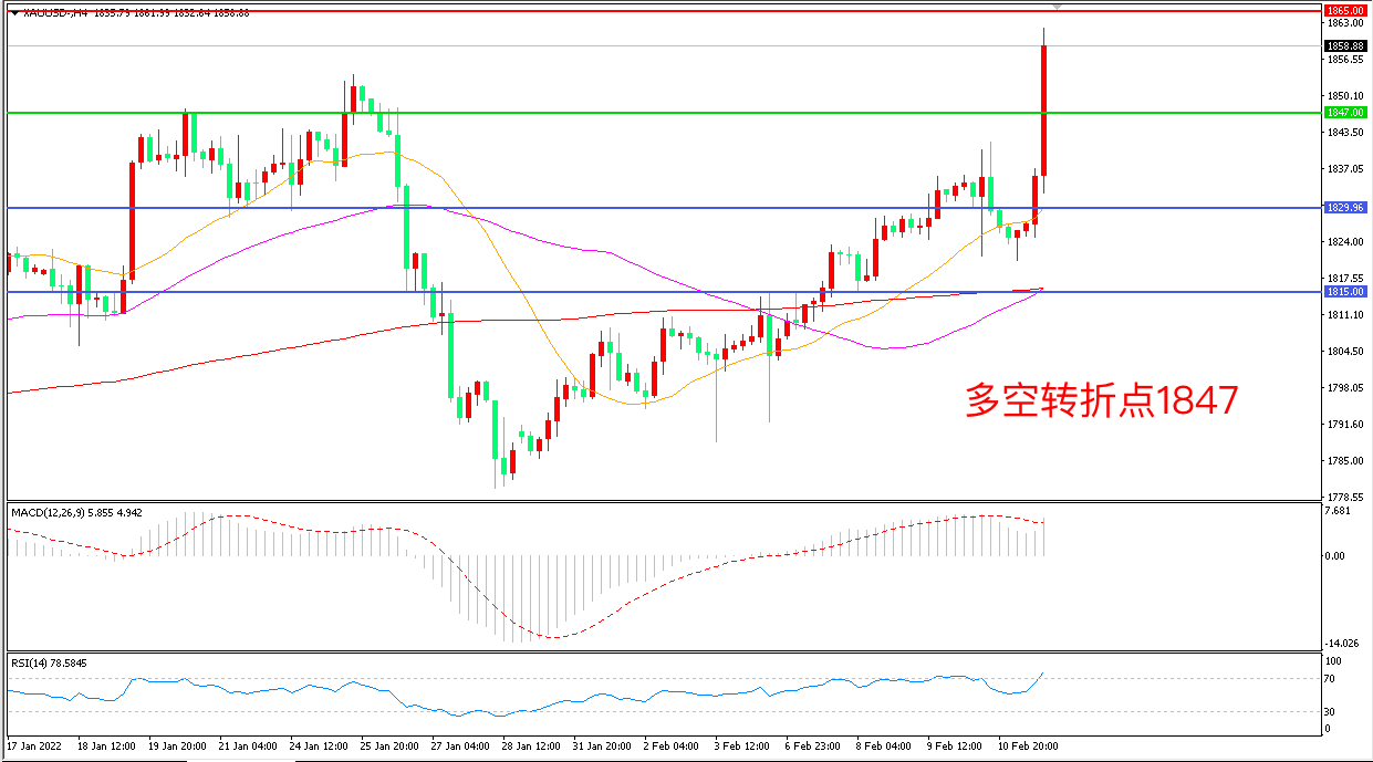 上周五(2月11日),美国总统拜登11日在与西方多个国家领导人召开的视频会议中称,俄罗斯“入侵”乌克兰的日期是2月16日,大量避险资金涌入黄金市场,金价长阳拉升,收报1858.88美元/盎司。考虑到地缘政治引发的避险需求,黄金投资或呈稳中向好趋势,伴随着通胀进一步上行和加息落地,多空博弈将继续发力。