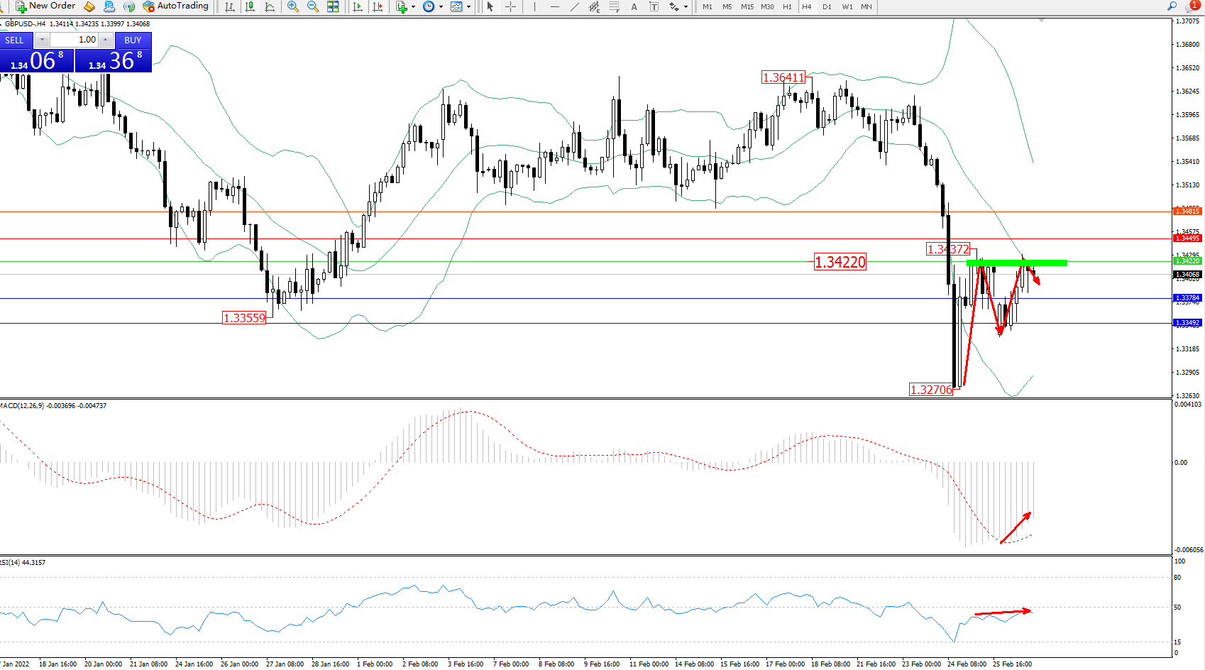 备选策略:1.34220上方看涨,目标1.34495、1.34815