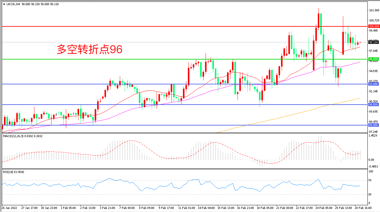 交易策略:在96.00之上看涨,目标100.00 103.00