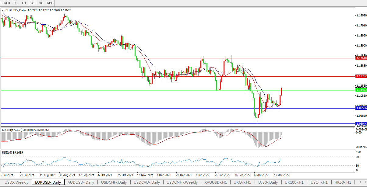 欧元兑美元处于3月1日以来的最高水平,尾盘上涨0.66%,至1.1157;尽管对俄乌谈判的乐观情绪消退,但通胀报告引发了成本上升的预期,俄乌冲突加剧了成本上升,将迫使欧洲提前而非推迟升息,从而支撑欧元。Scotiabank economics资本市场分析师Derek Holt表示,在3月通胀数据公布前,欧元小幅上涨,在通胀数据公布后又获得了额外提振。