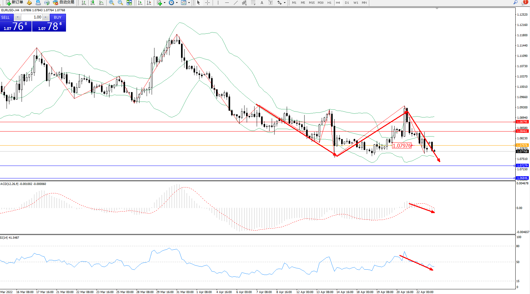 交易策略:1.07976下方看跌,目标1.07279、1.06846