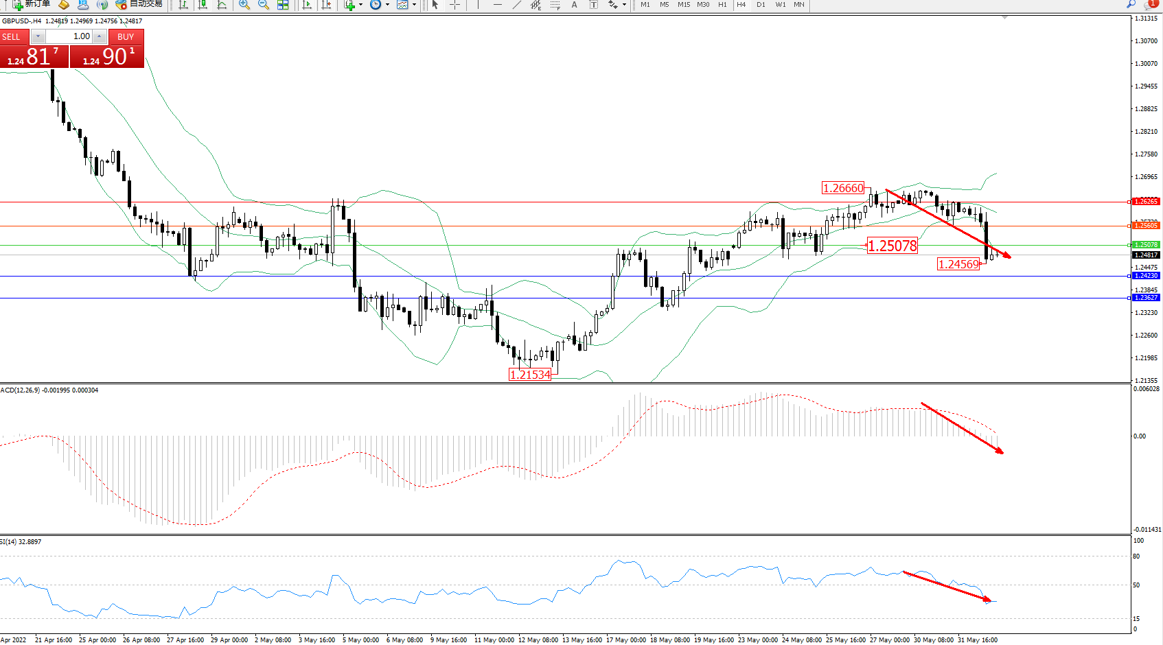 交易策略:1.25078下方看跌,目标1.24230、1.23627