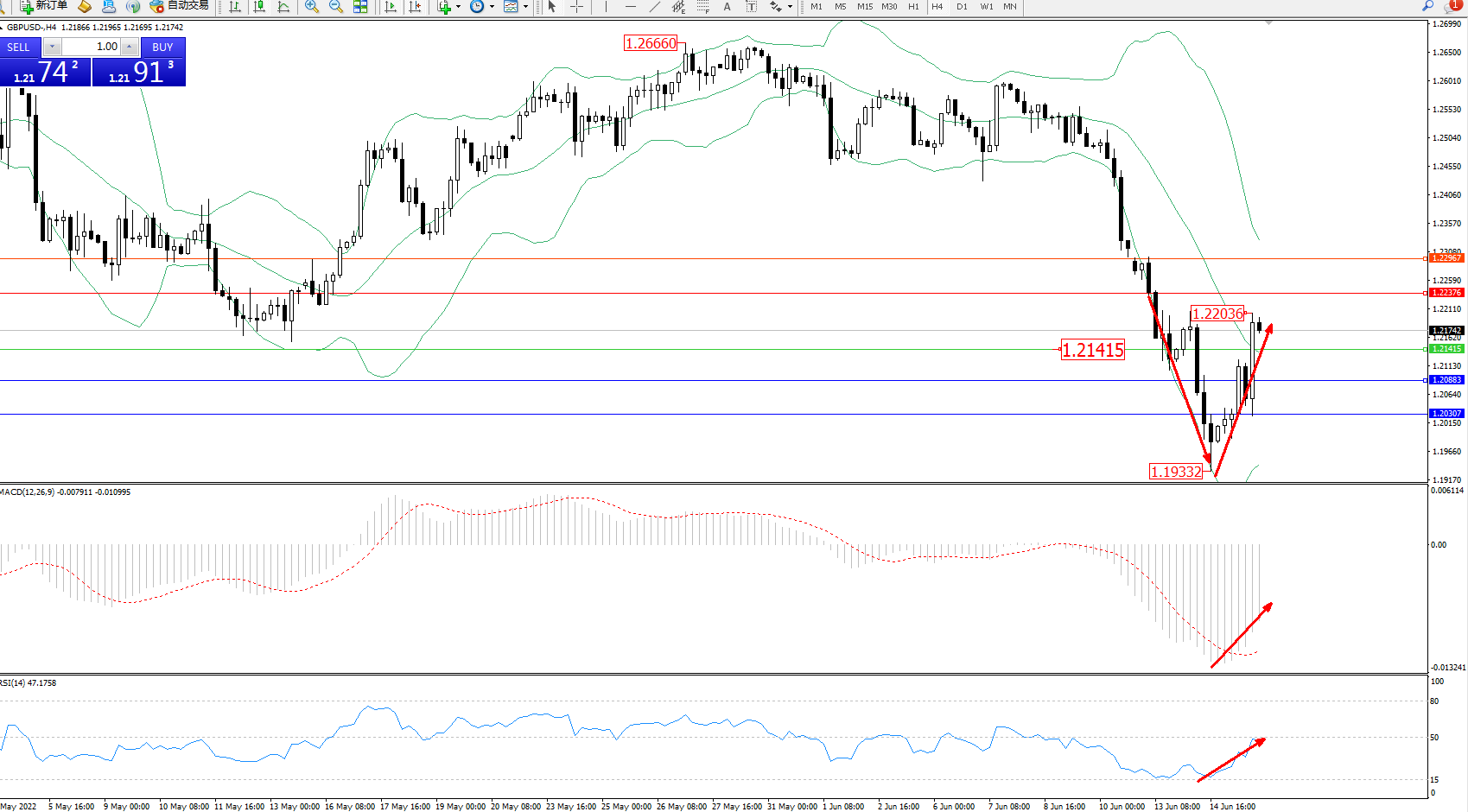 交易策略:1.21415上方看涨,目标1.23376、1.22967