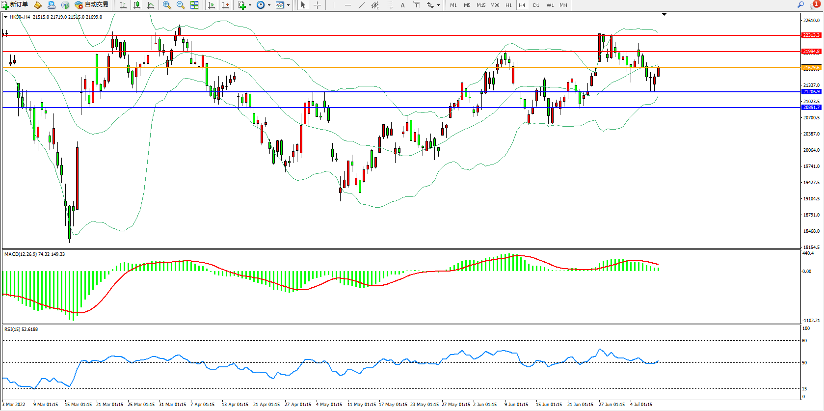 香港恒生指数7月7日(周四)收盘上涨56.92点,涨幅0.26%,报21643.58点;港股主要指数均呈低开高走行情,恒生科技指数跌0.45%,大型科技股多数走低,美团、阿里巴巴小幅收跌,小米、腾讯涨超1%;香港特别行政区政府今日公布,经初步检视数据和科学分析,认为持续加强为抵港人士进行更频密的核酸检测会更有效阻断输入个案,因此决定由即日(七月七日)起暂缓个别航线熔断机制,直至另行通告。